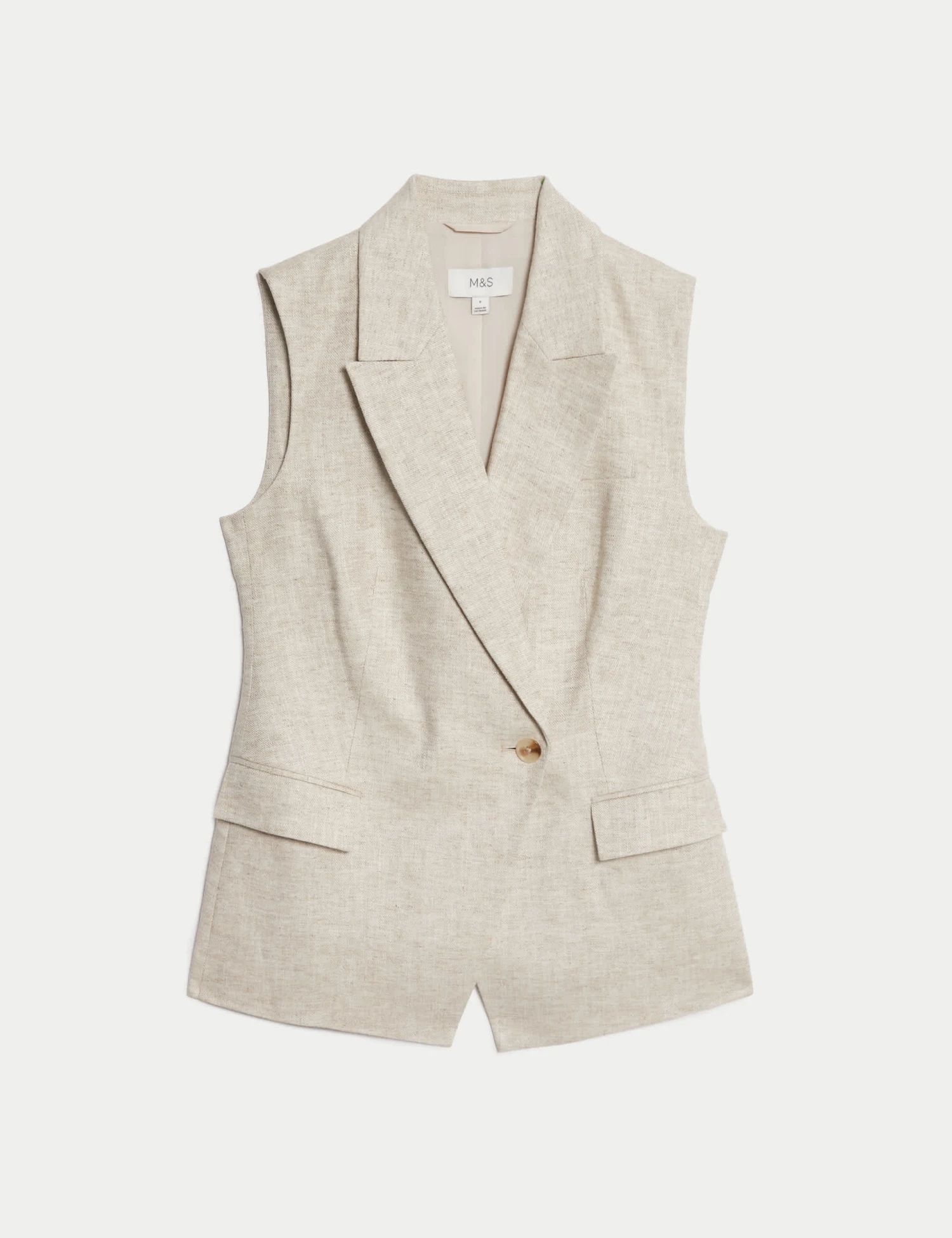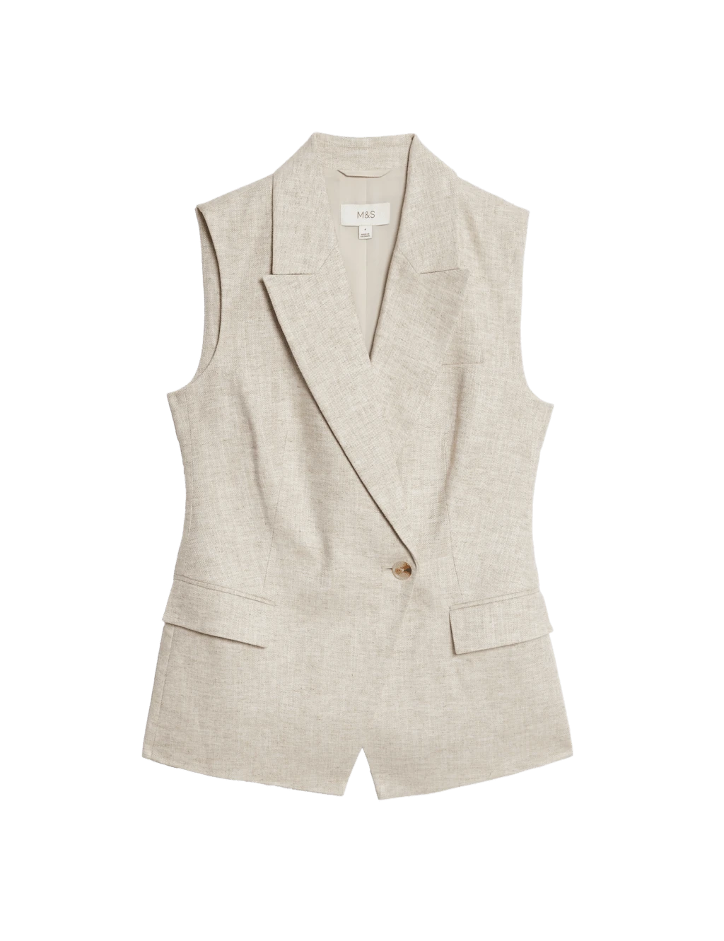 This linen-blend waistcoat is a contemporary piece of tailoring. It’s designed in a regular fit with a distinctive wrap front and single button fastening. A vent at the back ensures easy movement. M&S Collection: easy-to-wear wardrobe staples that combine classic and contemporary styles.