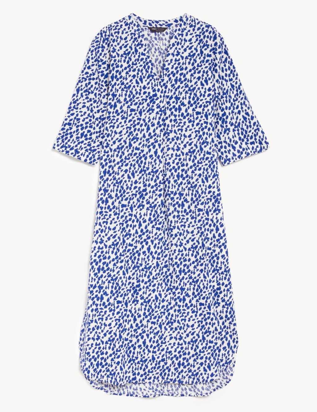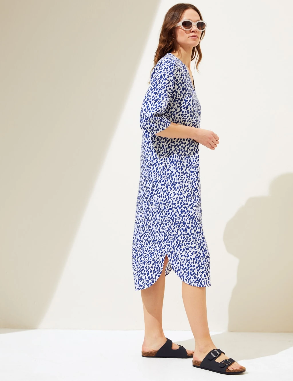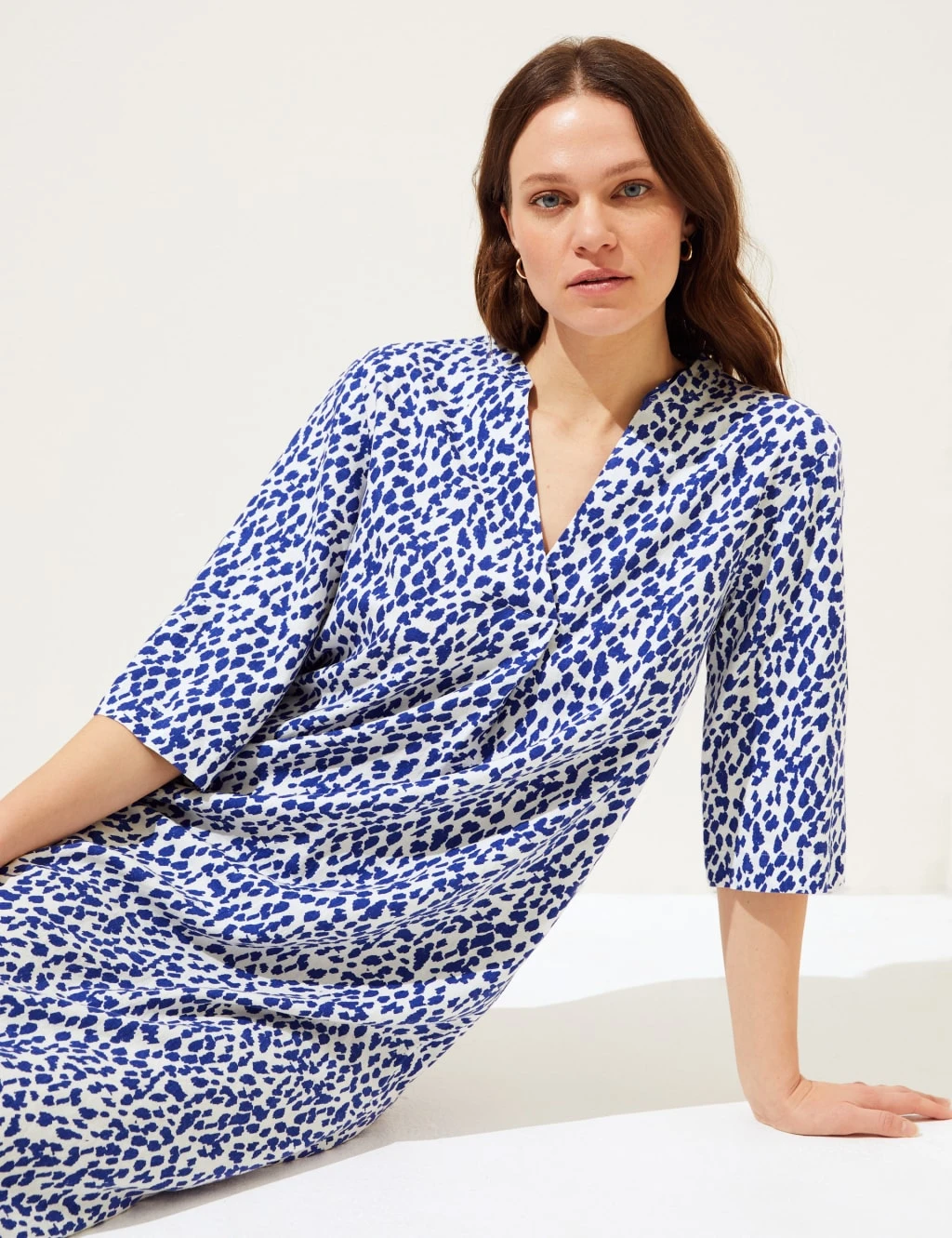 A bold print and effortless shape make this linen-rich tunic a statement style. Cut to a regular fit, it has an easy straight silhouette and falls to the calf. The v-neckline and wide, three-quarter sleeves keep it feeling breezy. Our easy-iron finish means you can quickly press it and go.