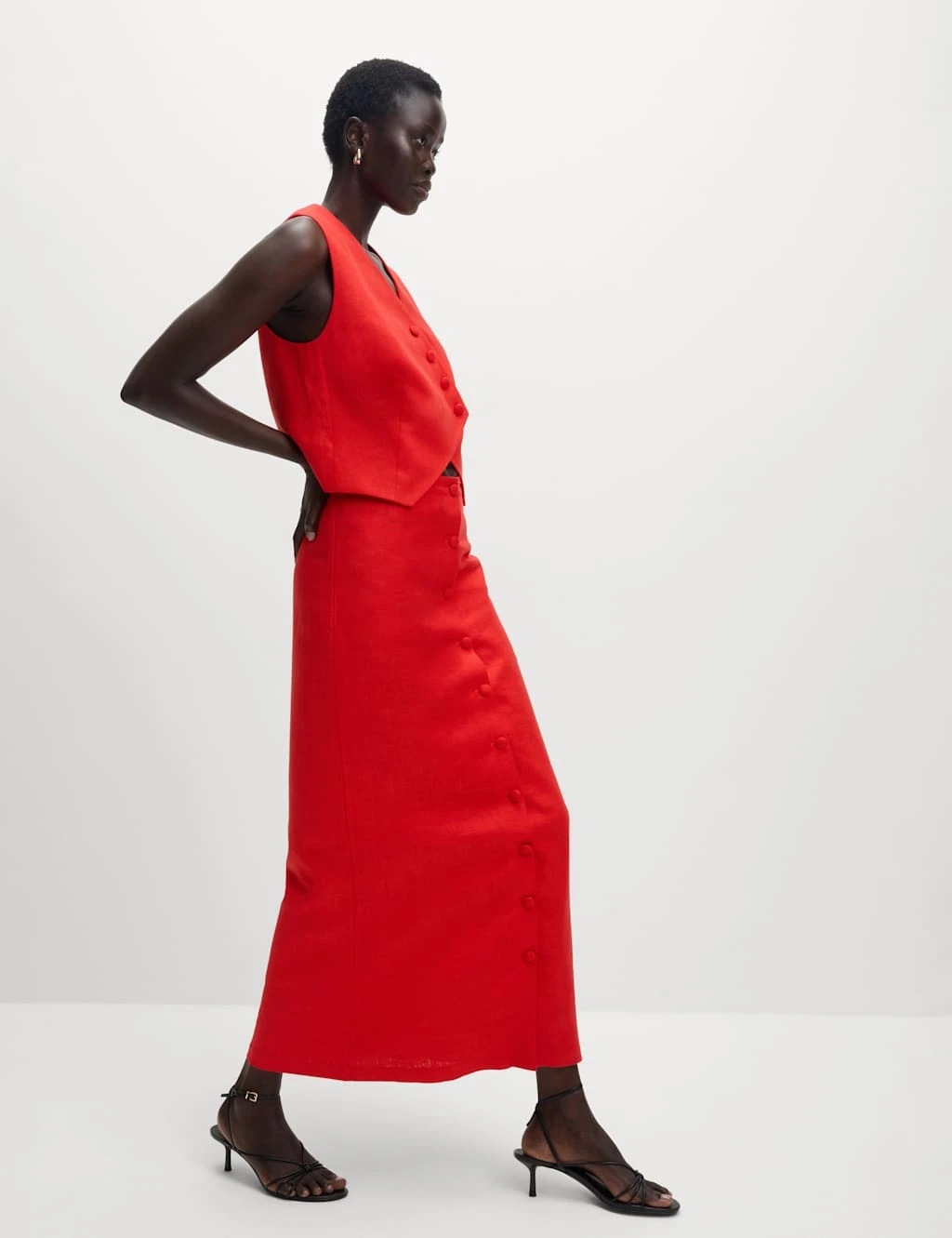 This waistcoat is crafted from linen-rich twill to create a comfy feel. Easy regular fit, featuring an asymmetric front and a v-neckline for a feminine aesthetic. Texture in the material gives a refined touch. Complete with four neat buttons at the front. M&S Collection: easy-to-wear wardrobe staples that combine classic and contemporary styles.