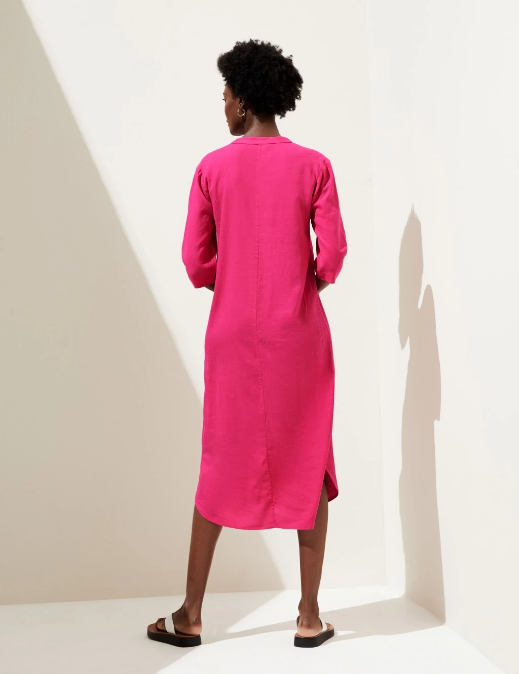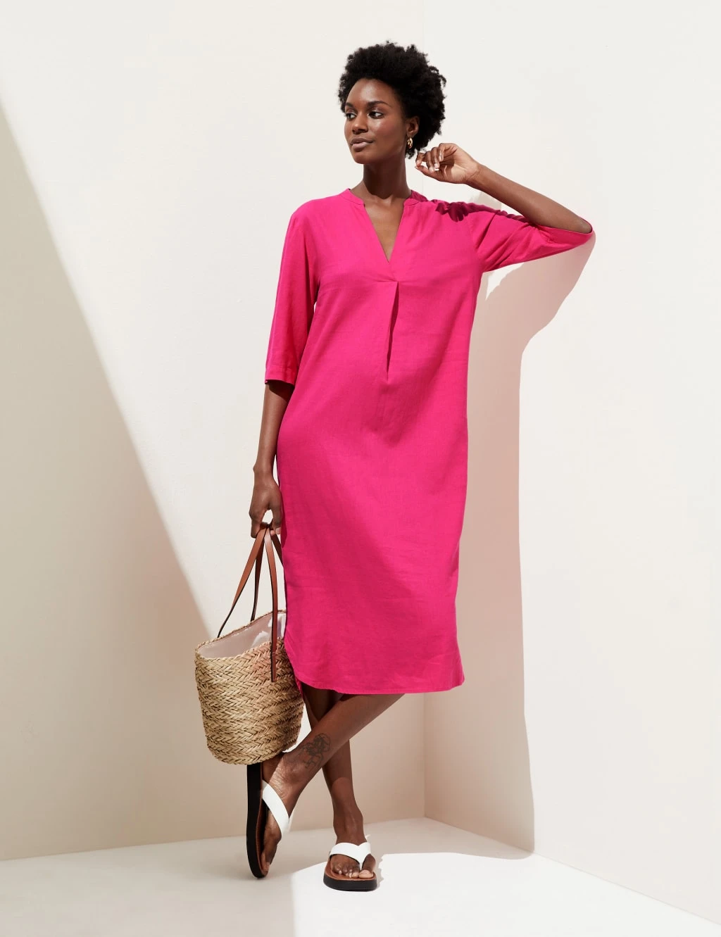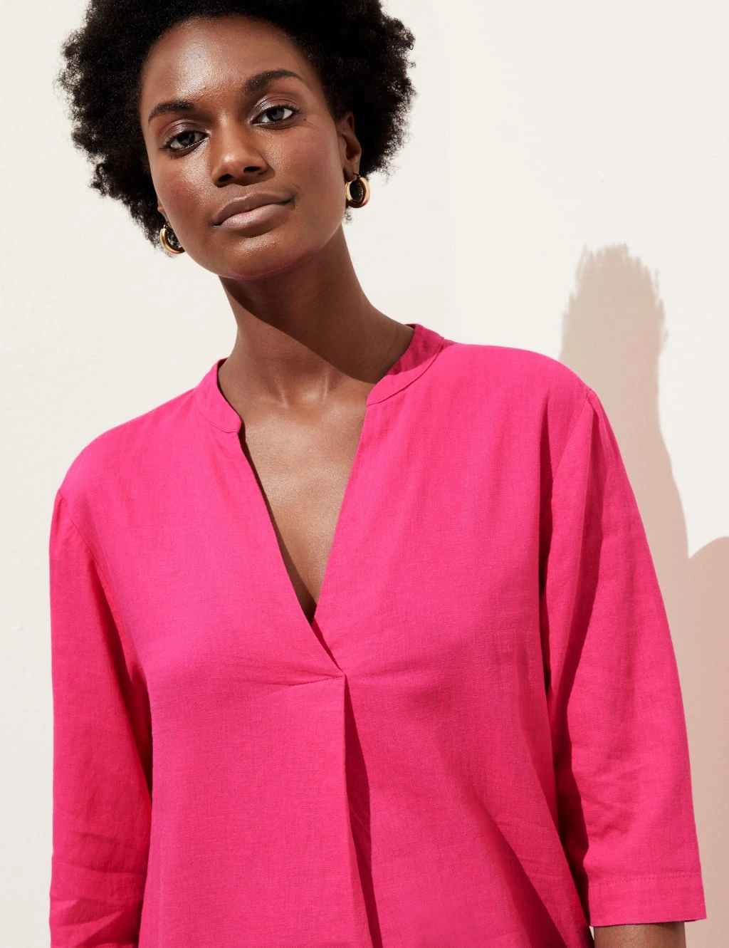 Effortless style is a breeze with this linen-rich tunic. It comes in an easy regular fit, with a v-neckline and wide, three-quarter sleeves. The midi-length hem is gently curved for a flattering silhouette. With our easy-iron finish, this top just needs a quick press and you’re good to go.