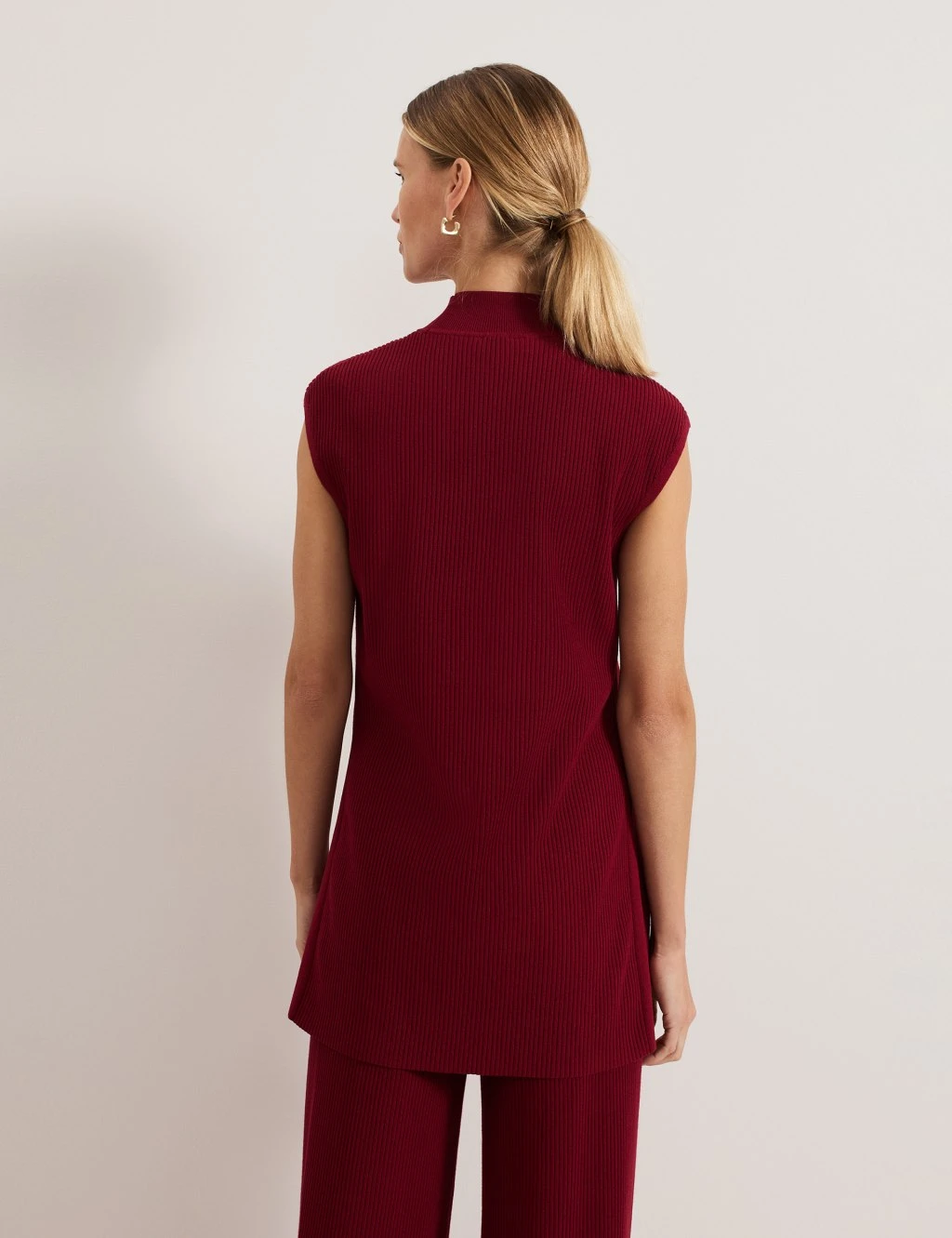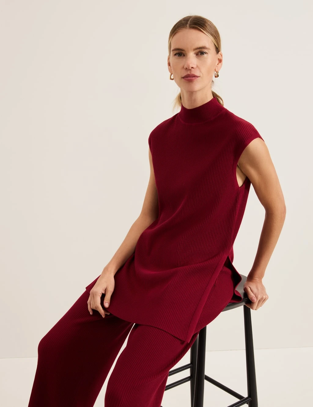 This tunic by Phase Eight is a versatile addition to your capsule wardobe. It’s made in a regular fit, with a funnel neck for a cosy feel. The ribbed texture gives it a premium look, while the sleeveless design makes it ideal for layering up. Deep splits in the side hem provide easy movement.