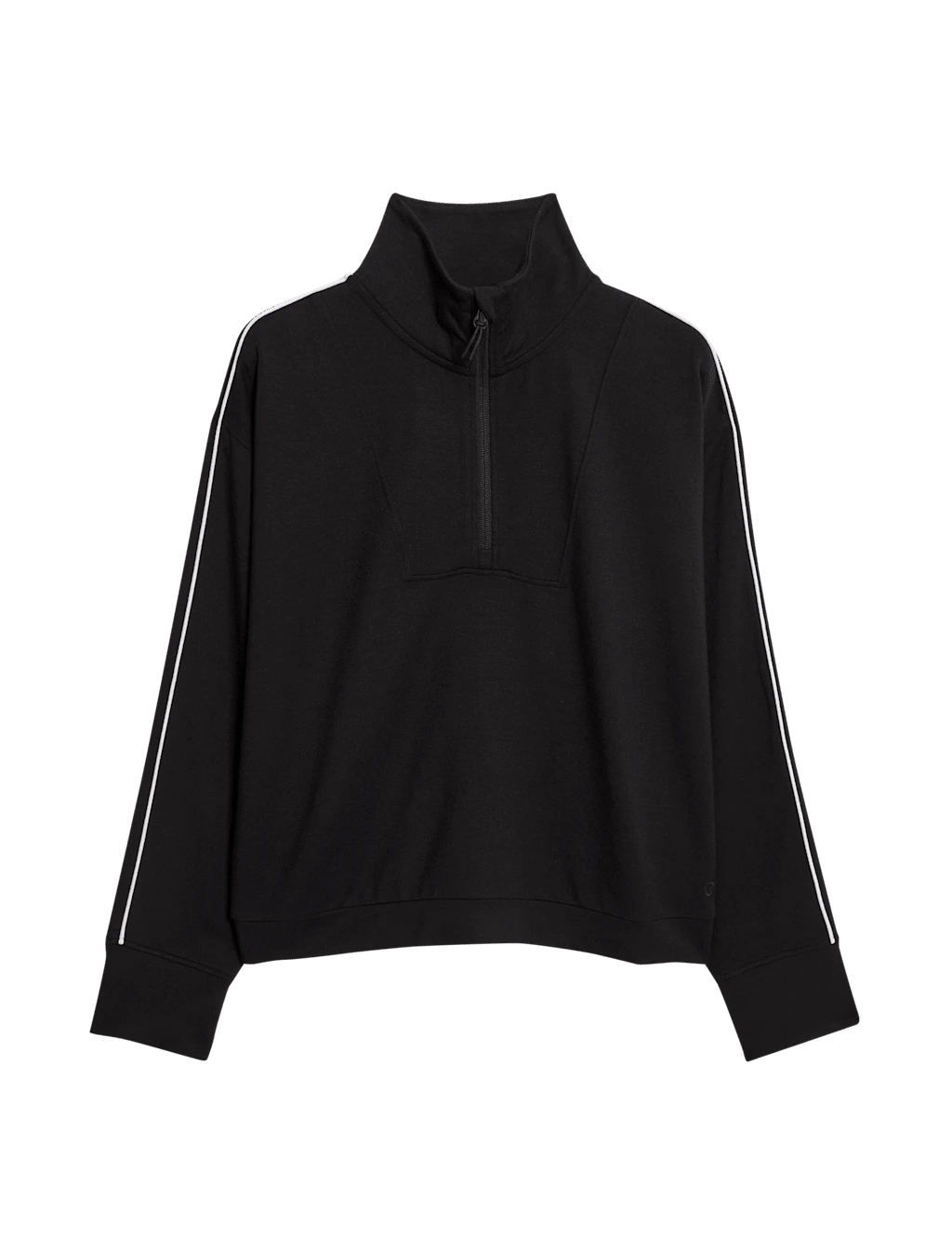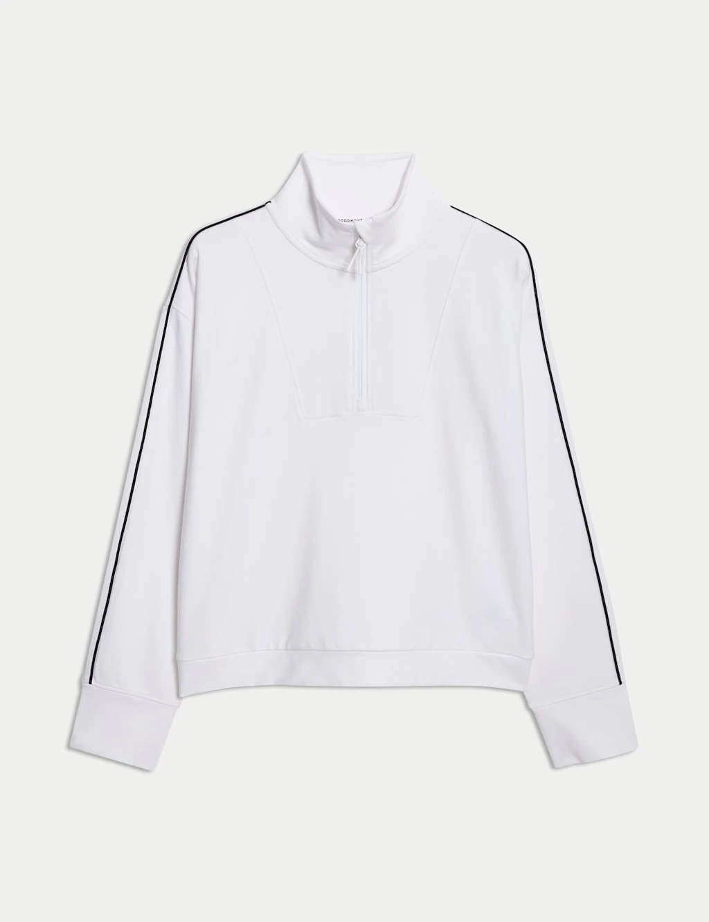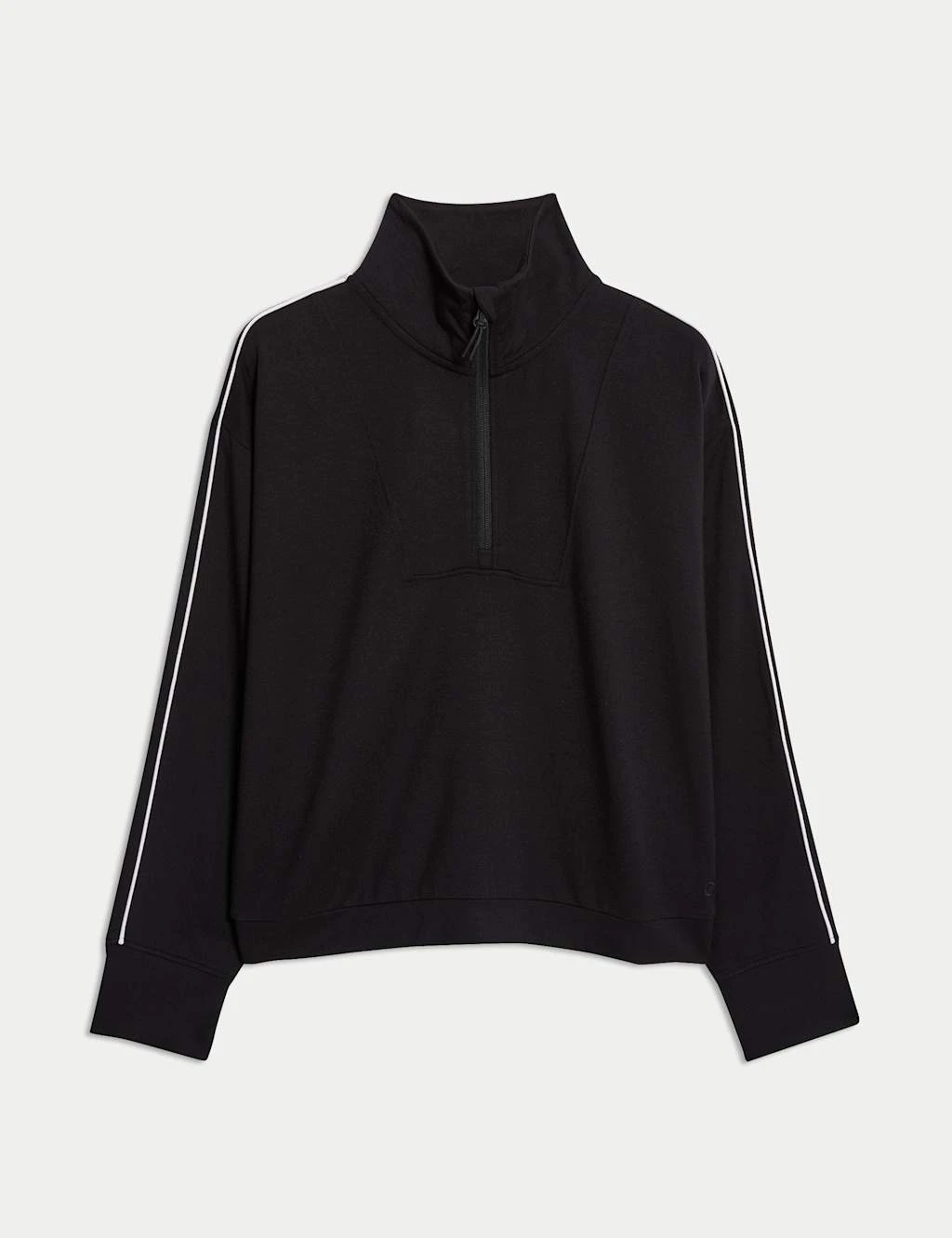This breathable modal-rich top from our Goodmove collection is perfect for warming up or cooling down. It’s designed in a comfy relaxed fit, with a half-zip fastening at the cosy funnel neckline. The supersoft fabric is quick-drying and moisture-wicking to keep you feeling fresh. A neat piped trim runs down the long sleeves for a sleek finish.