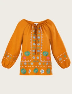 Bring extra charm to your warm-weather wardrobe with this popover blouse from Monsoon. It’s made in a regular fit with an elegant v-neckline and voluminous long sleeves. This versatile piece is printed with polka dots, stripes and petals and finished with embroidery and sequin embellishment for statement style.