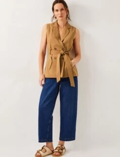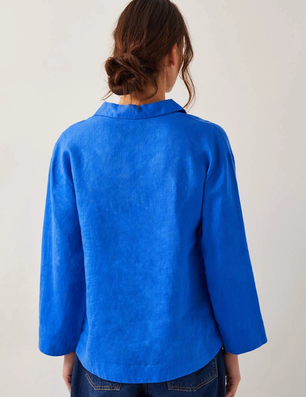 Add a bright touch to your warm-weather wardrobe with this breathable pure linen Monsoon blouse. This popover style is cut in a regular fit, with dropped shoulders to the long loose-fitting sleeves for a relaxed vibe. A smart collar sits above a v-neckline, which is punctuated with a single contrast button. The hem is gently curved for a flattering finish.