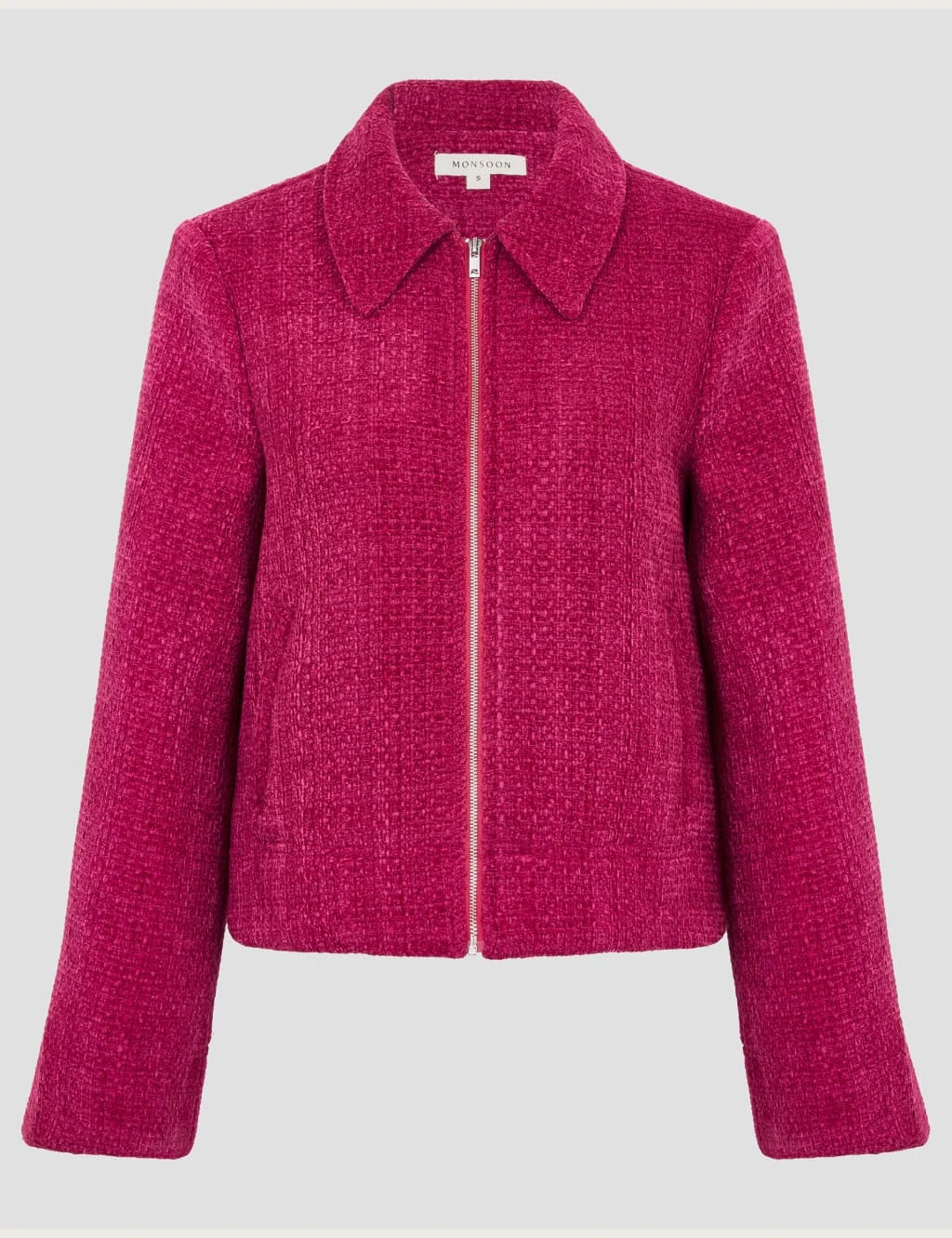 This Monsoon jacket will complete your look with a bright pop of colour. It’s cut from tweed-textured fabric in a comfy regular fit, and features a smart collared neckline. A zip fastening and a slightly cropped hem add a contemporary feel, with hand pockets hinting at utility style.