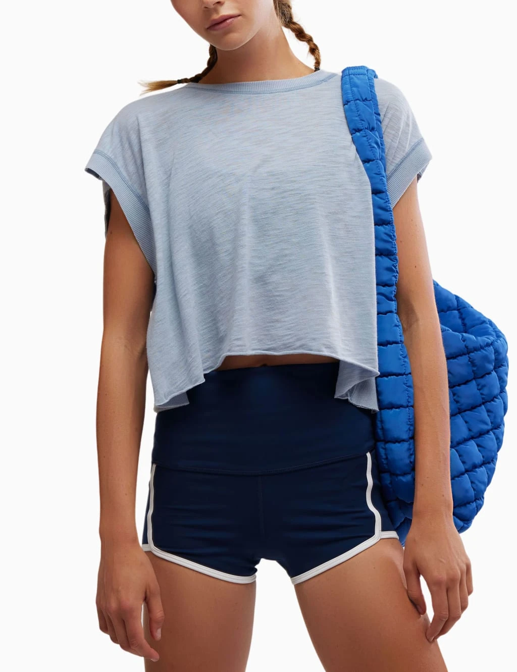 The cotton-rich My Time t-shirt from FP Movement has a light and airy feel that’s perfect for working out. It’s cut to a relaxed fit with a scoop neck and dropped short sleeves to enhance its slouchy shape. The wrap-detail cutout back will help keep you cool.