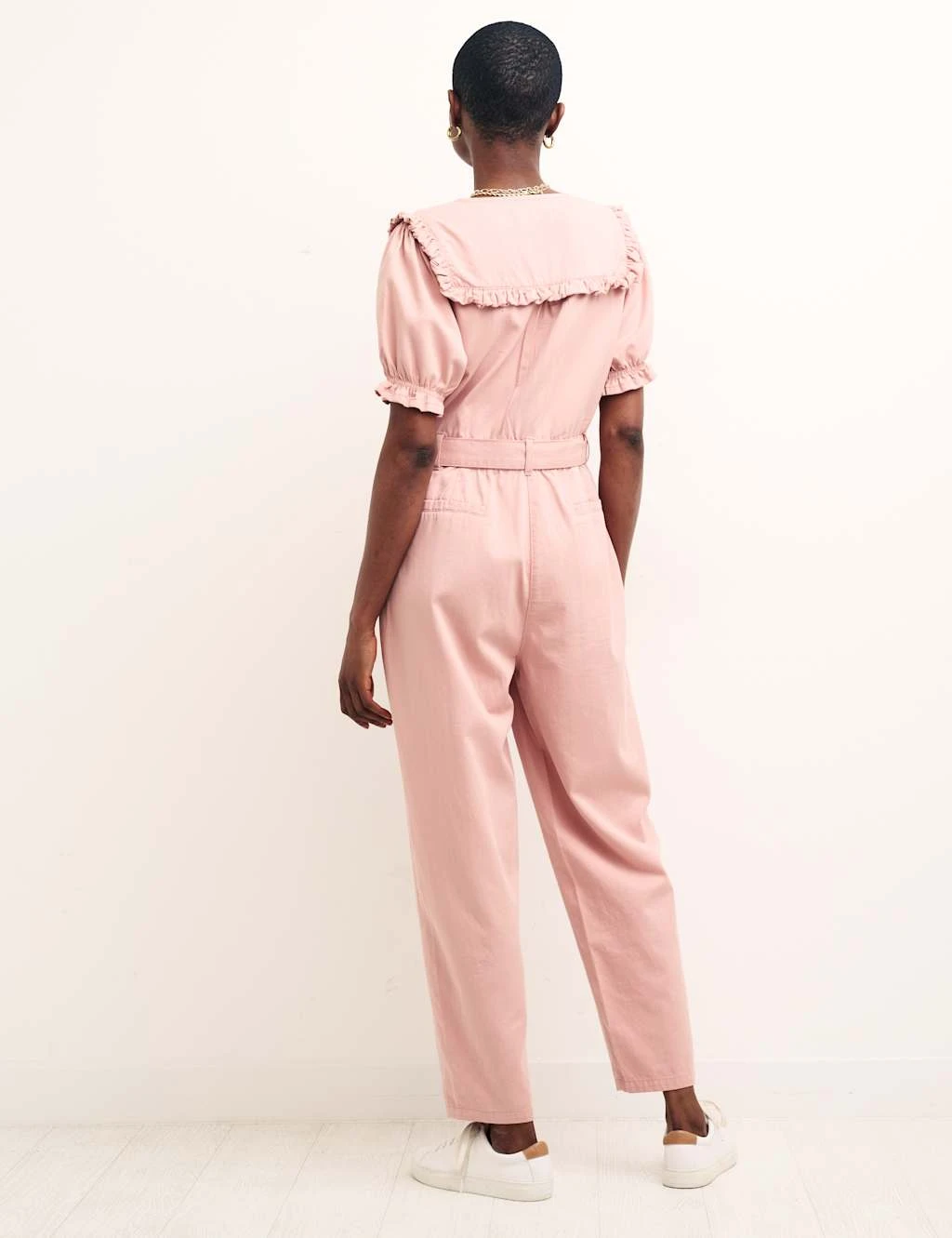 Frilled trims at the cuffs and shoulder yoke give a dainty flourish to this pure organic cotton jumpsuit by Nobody’s Child. It’s crafted with cropped hems and short puff sleeves for a contemporary effect. A zip fastening runs up the front to the crew neck, while a self-tie belt cinches in the waist for a flattering shape. Nobody’s Child designs are cut to a form-fitting shape, so if you’re looking for a more relaxed fit, we recommend choosing the next size up.