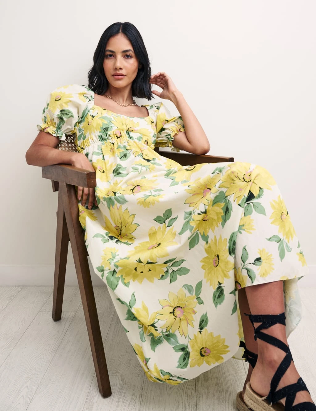 Bright florals give this organic cotton tea dress from Nobody’s Child a truly feminine aesthetic. Its relaxed fit creates a laid-back feel, accentuated by the floaty midi skirt. The on-trend puff sleeves are complemented by a square neckline and the piece is finished with a self-tie at the back for a flattering shape.