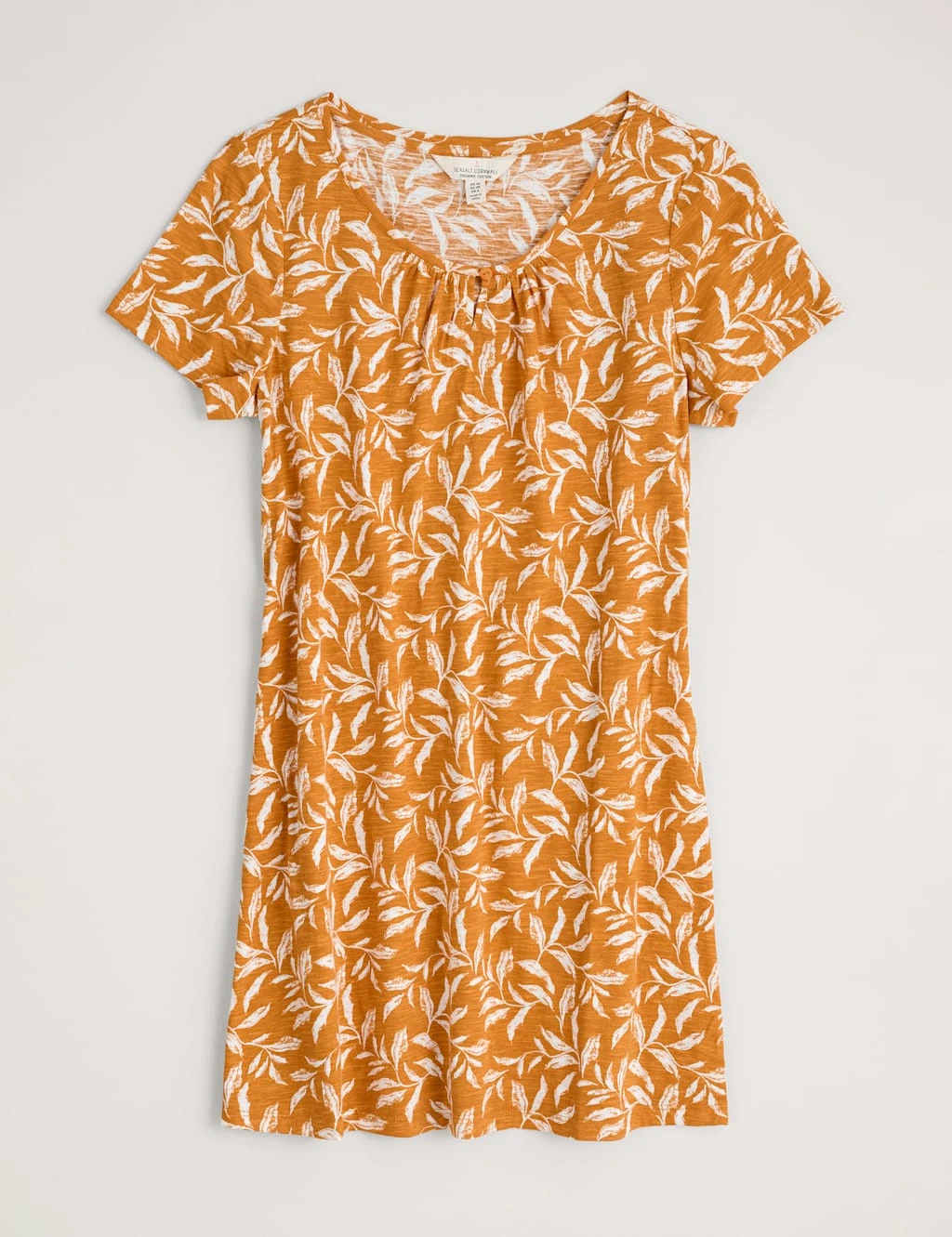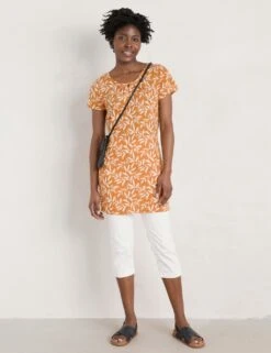 This organic cotton jersey tunic from Seasalt Cornwall will make a feminine addition to your wardrobe. It’s crafted to a regular fit with breezy short sleeves. The flattering scoop neckline features a keyhole button fastening and delicate gathering at the front. A tie detail at the back of the waist and an all-over leaf print add dainty touches.