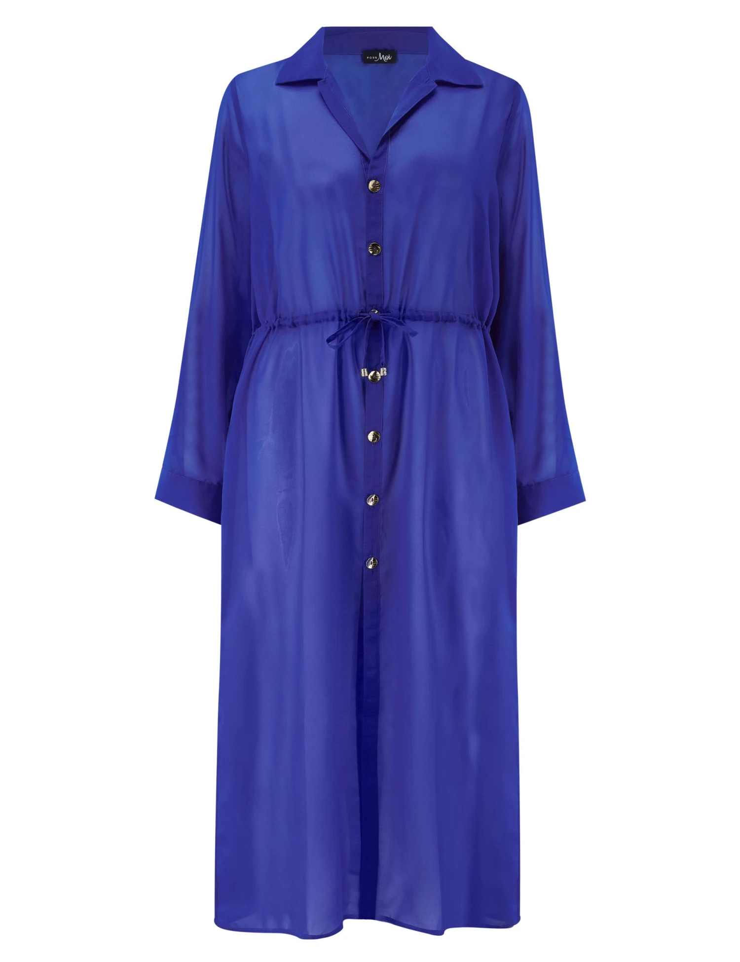 Cut from lightweight chiffon, this midaxi-length shirt by Pour Moi is an effortlessly elegant beach cover-up. The regular-fit style features a smart collar and a button-through front. Cinch the waist tie to create a flattering silhouette, and fasten back the long sleeves with the roll tabs.