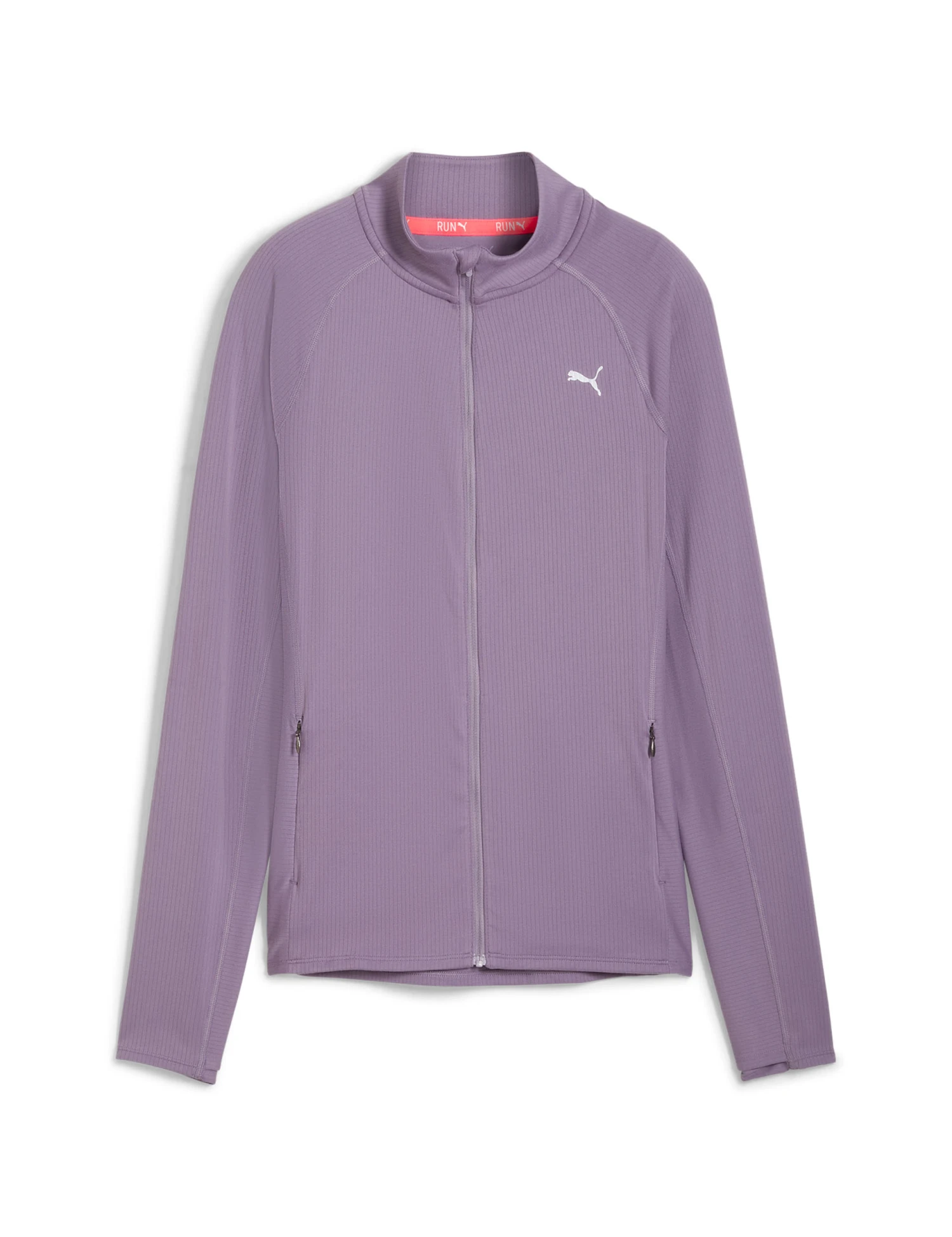 Stay warm during those outdoor track sessions with this Puma sports jacket. This timeless style is made to an easy regular fit from stretchy ribbed fabric that moves with you. A funnel neck provides a cosy feel and the zip-through fastening makes dressing easy. Two zipped side pockets allow you to carry your keys and phone.
