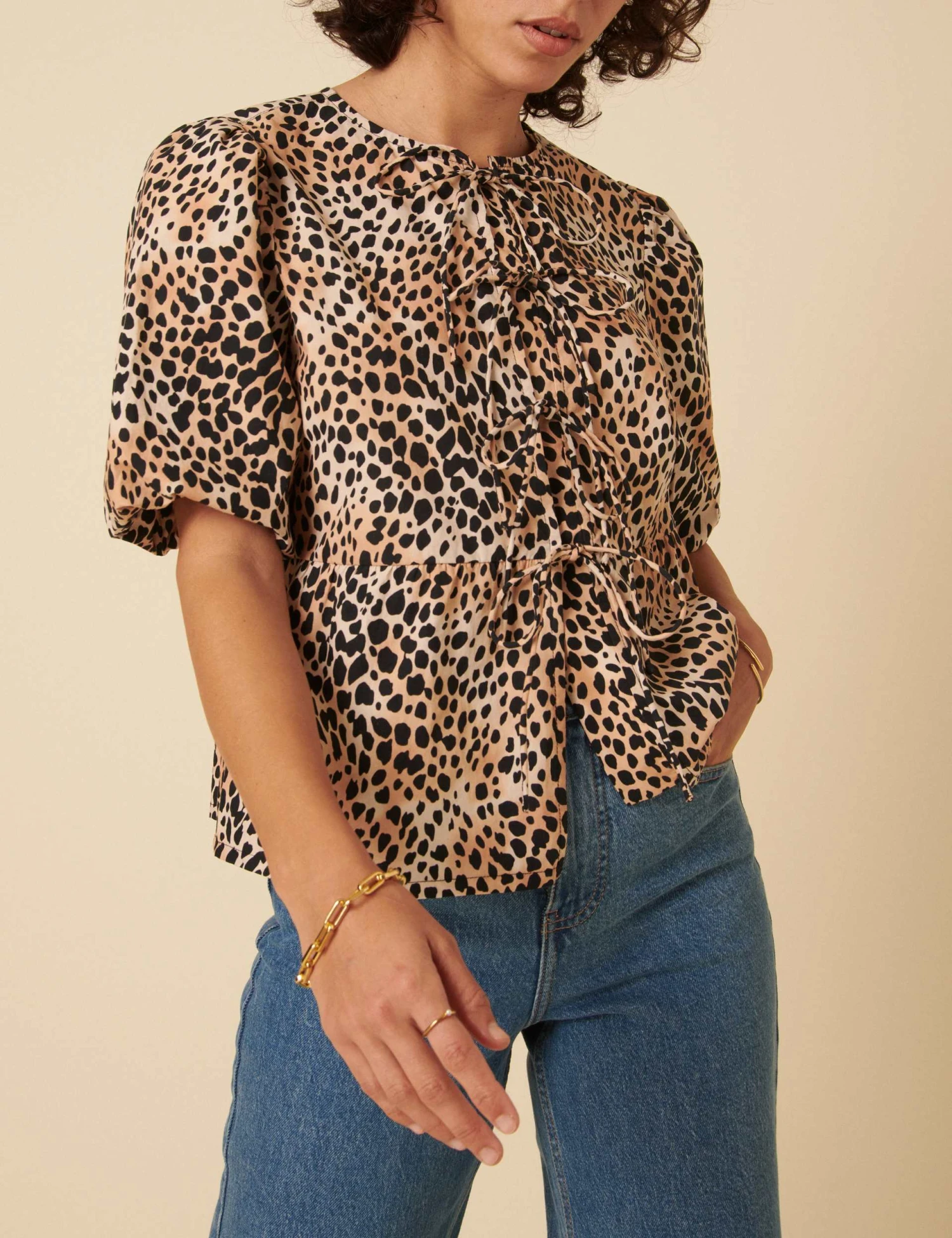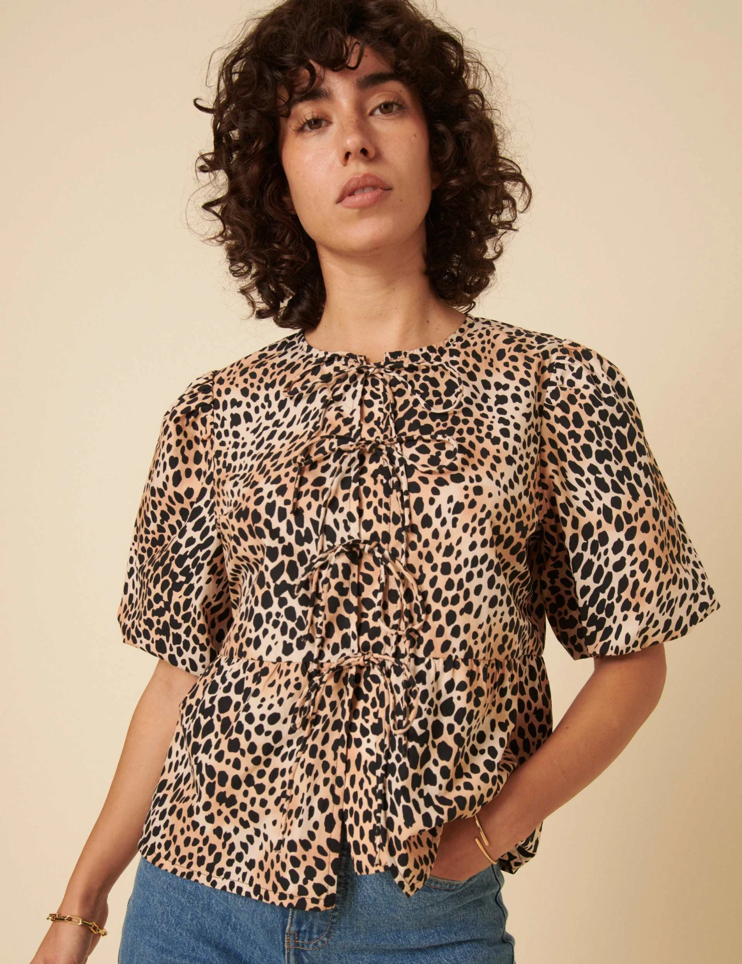 Bring a bold touch to your ensemble with this animal print cotton blouse by Nobody’s Child. It’s made in a regular fit, with a timeless crew neckline and short puff sleeves. The peplum shape fastens at the front with self-tie bow details for a neat finish.
