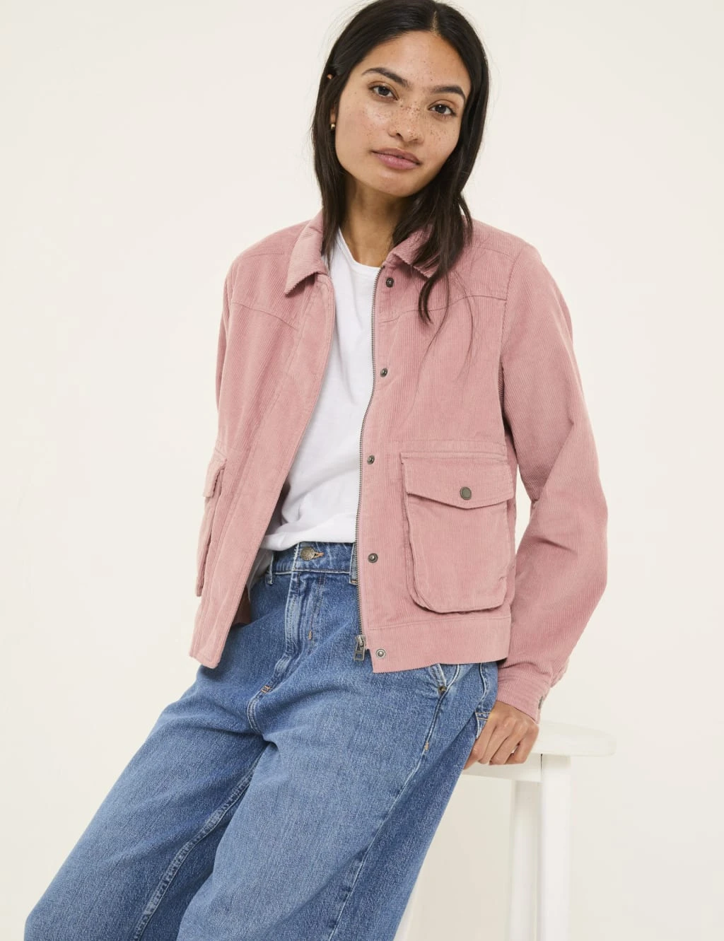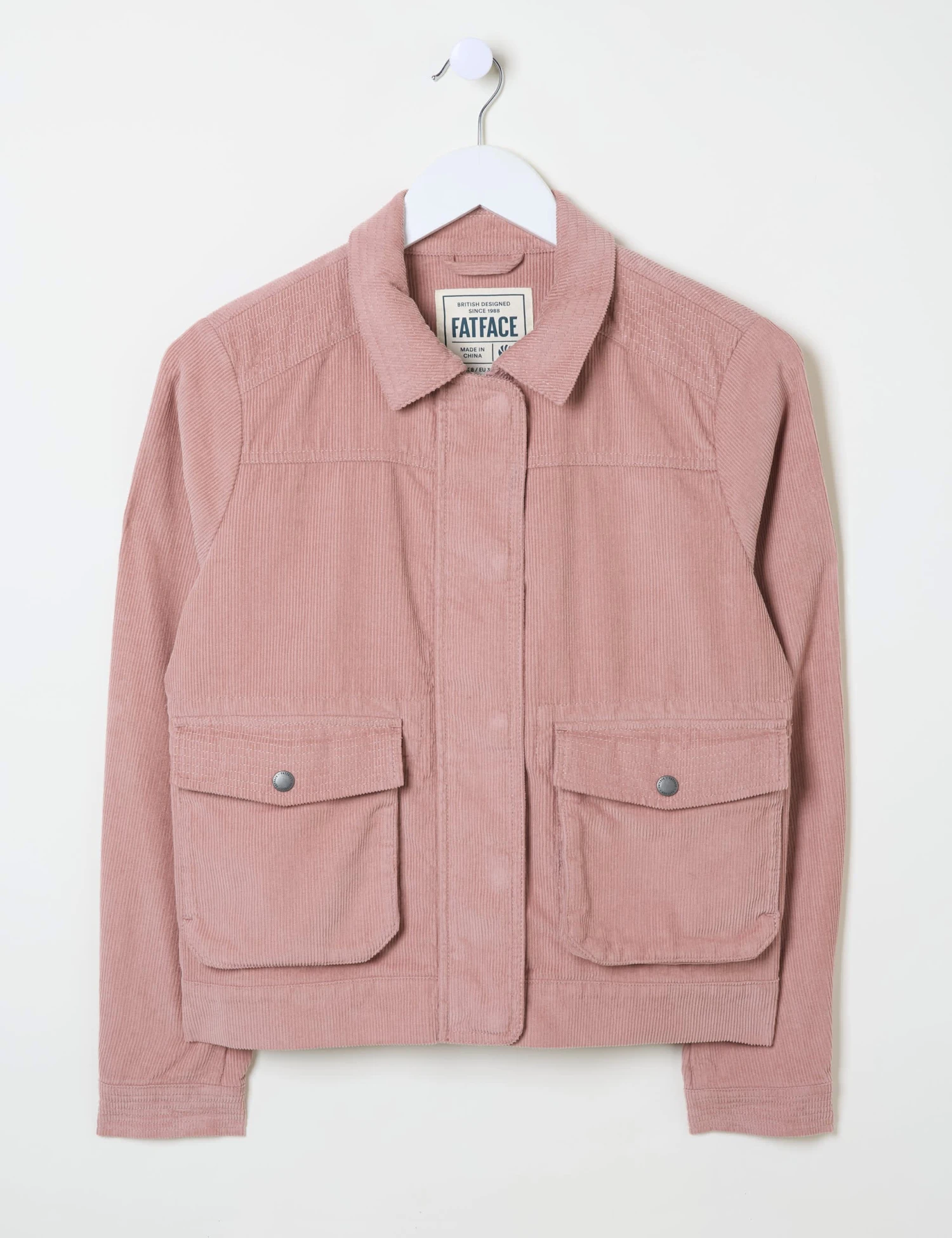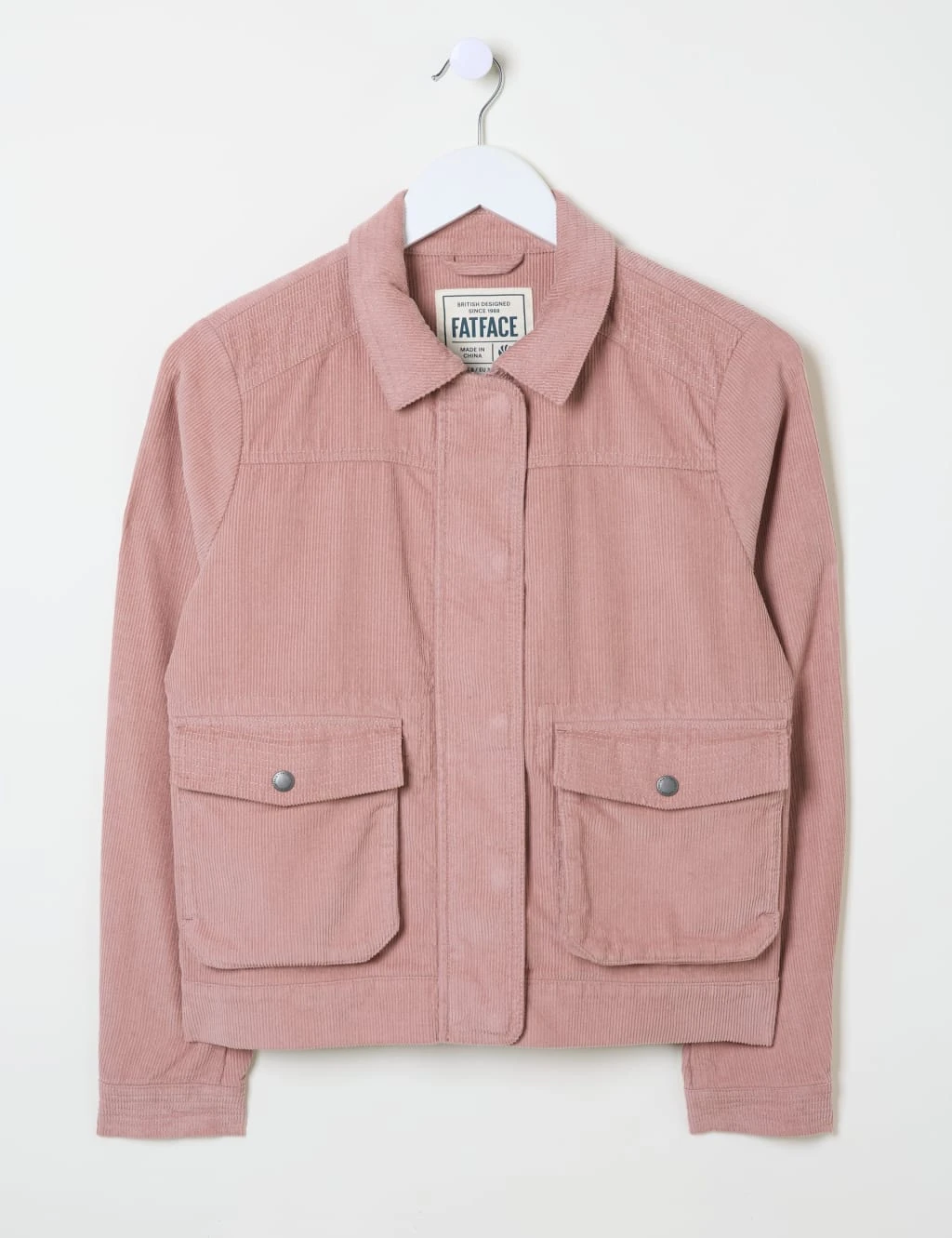 This lightweight FatFace jacket is crafted from pure cotton cord for a textured look and soft handfeel. It’s made in a regular fit with a slightly cropped length. A collared neckline and concealed zip and popper fastening bring utility-inspired detail. Two front patch pockets are ideal for storing your essentials.