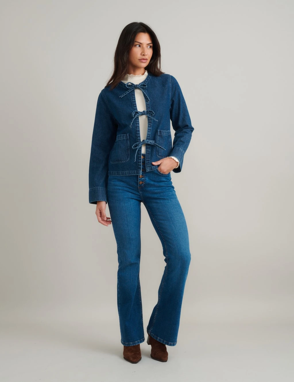 This Nobody’s Child denim jacket is crafted from pure cotton for a gentle handfeel. It’s made in an easy relaxed fit, with statement tie fastenings at the front and a contemporary collarless neckline. At the waist, patch pockets provide utility-inspired flair.