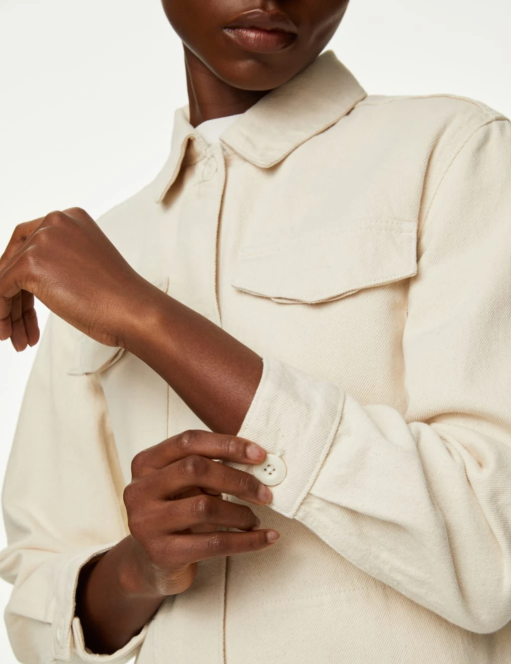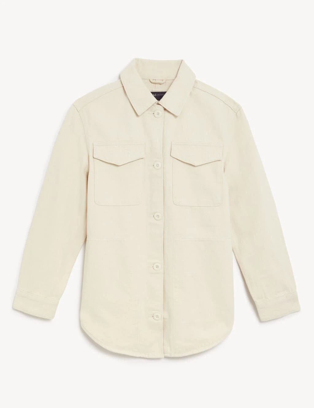 This denim shacket is crafted from washed pure cotton with a soft handfeel for comfort. It’s cut in a regular fit, with a neat collared neck, button-through fastening and classic buttoned cuffs. Flap pockets on the chest give a utility look.