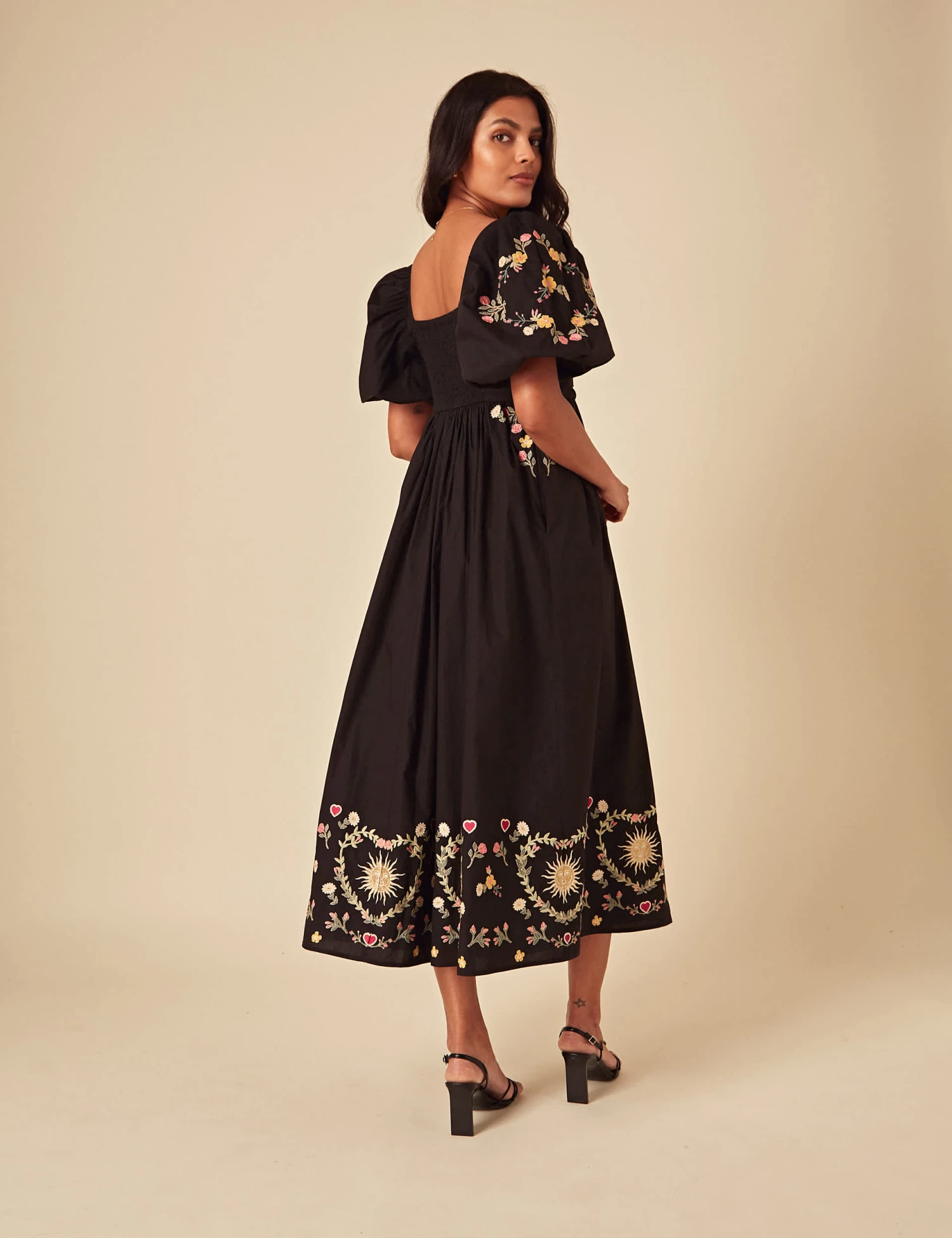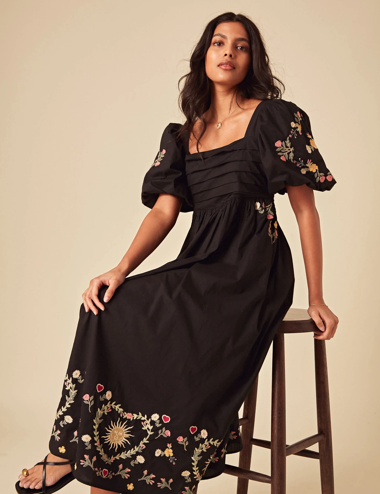 With its delicate floral embroidery, this pure cotton dress by Nobody’s Child X Elizabeth Scarlett will make a charming addition to your wardrobe. It’s cut in a comfy regular fit, with a layered, square-neck bodice and short puff sleeves. A tier on the skirt adds a touch of volume. A shirred back makes this midi-length style a comfy choice.