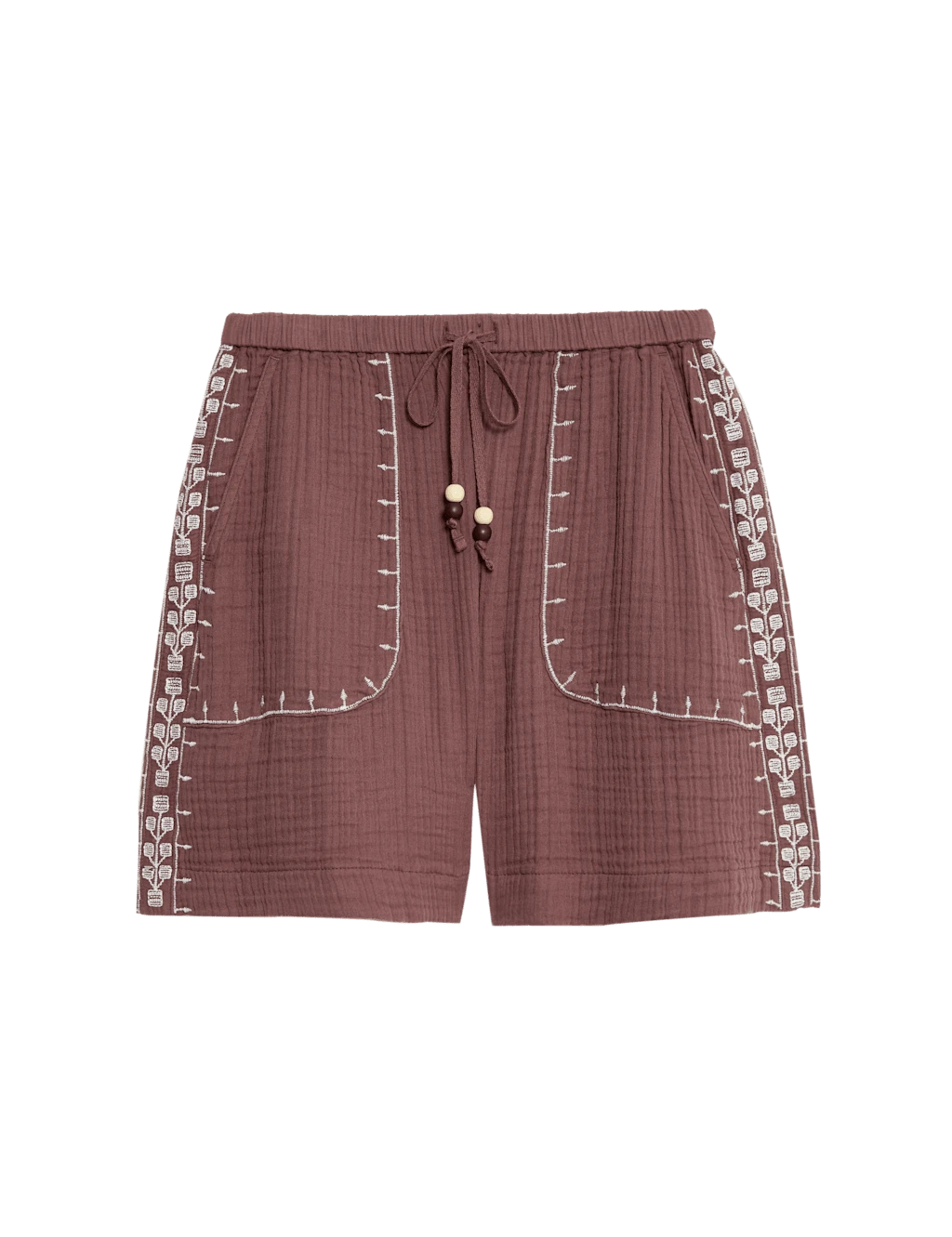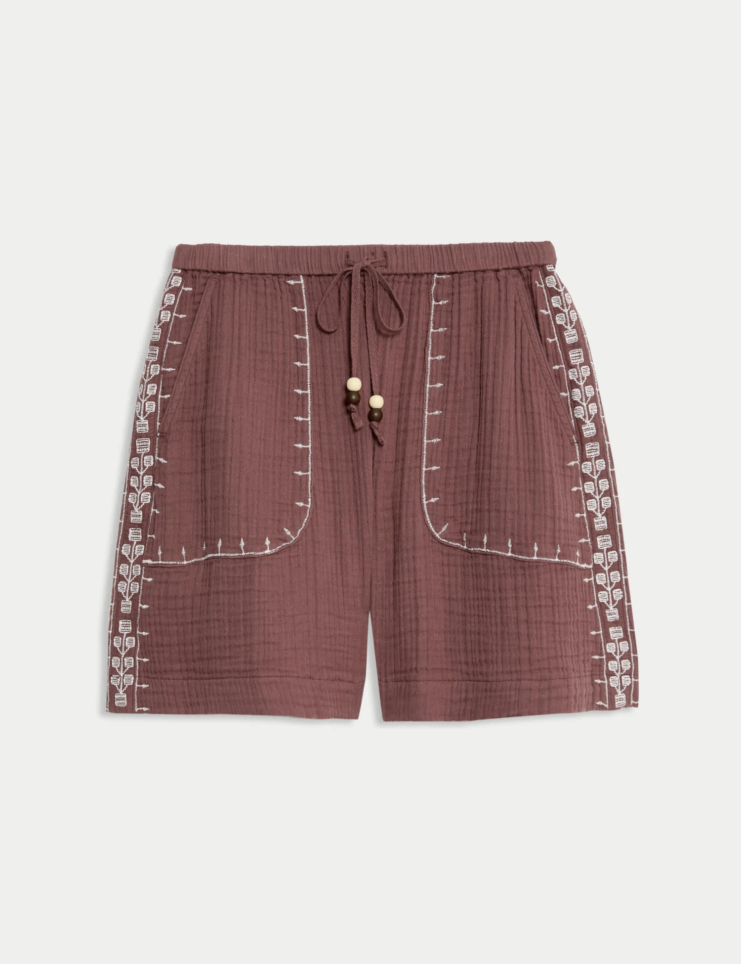Comfort meets boho-inspired style in these pure cotton shorts from our Per Una collection. They’re cut from textured triple cloth fabric in a regular fit, with an elasticated high waist and drawstring fastening. These sunny-day staples are finished with delicate embroidery and handy side pockets. Per Una: stylish designs crafted with carefully considered details and feminine flourishes.