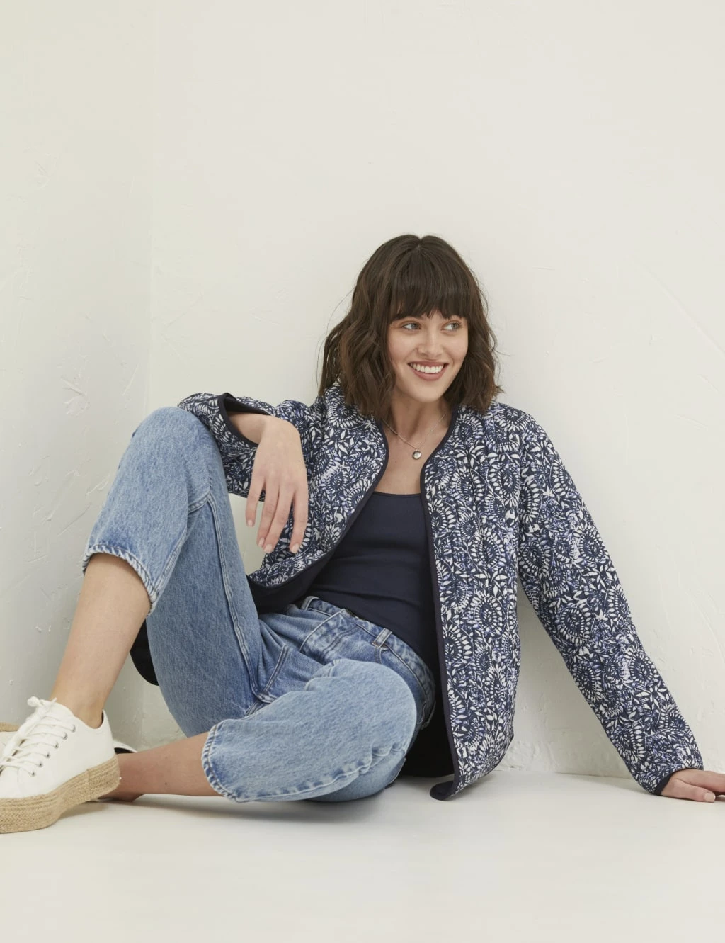 This quilted pure cotton jacket from FatFace is the perfect layering piece for the weekend. It’s designed in a regular fit, with a short length and a stylish collarless neckline. The bold floral batik print will pop out against your casual looks.