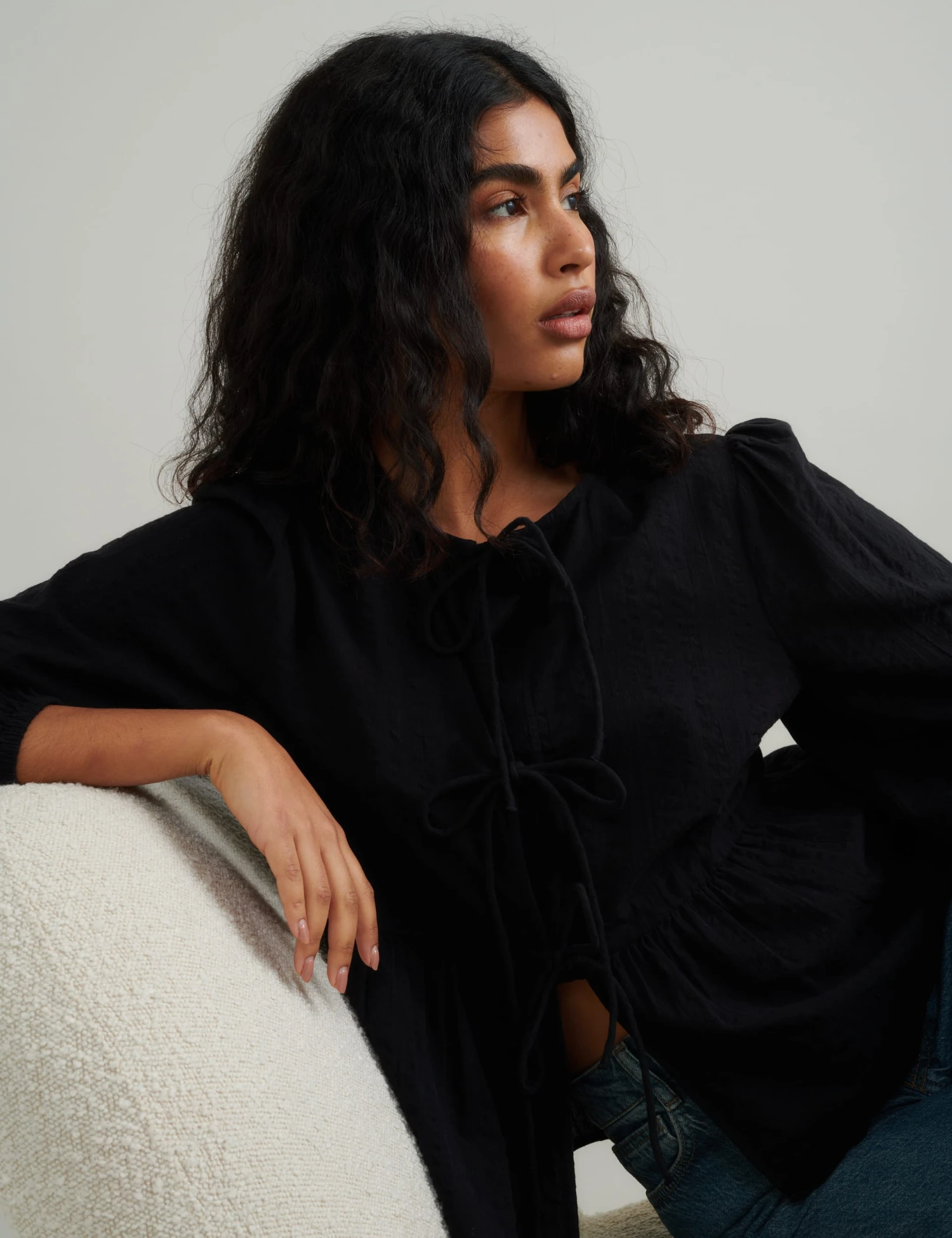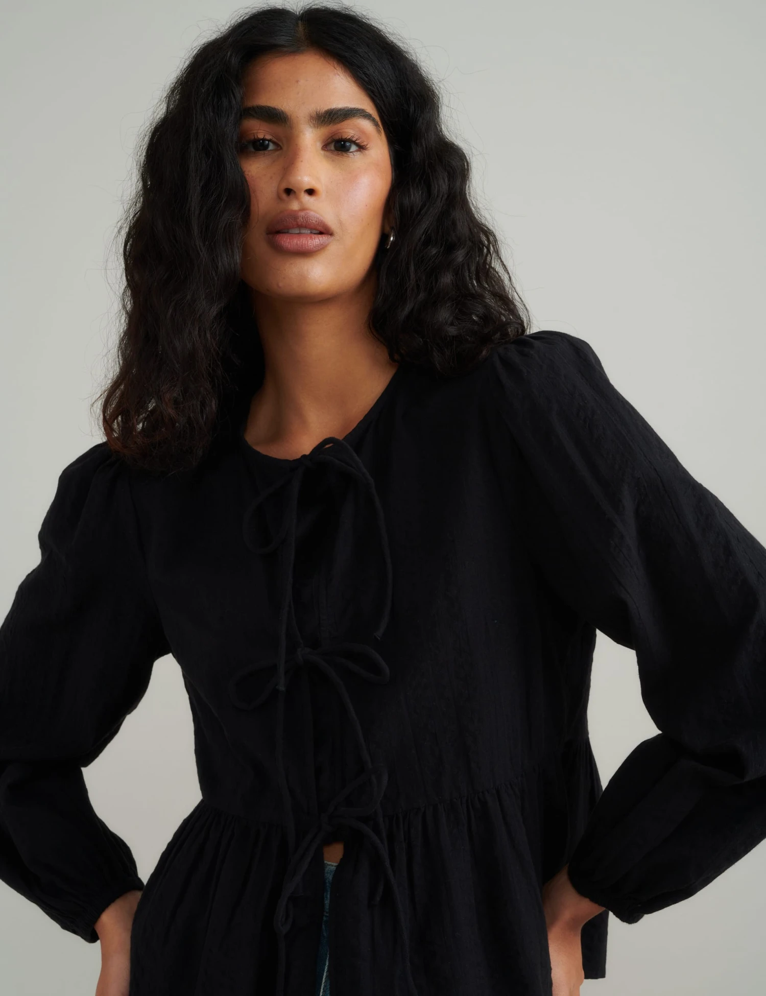 Add a standout feel to your outfits with this Nobody’s Child blouse, featuring a modern tie front. It’s made from pure cotton and cut to a comfy regular fit. Flared long sleeves and a flared hem create a voluminous silhouette.