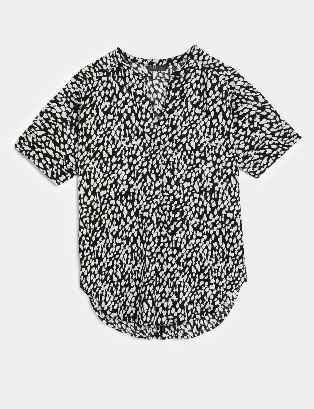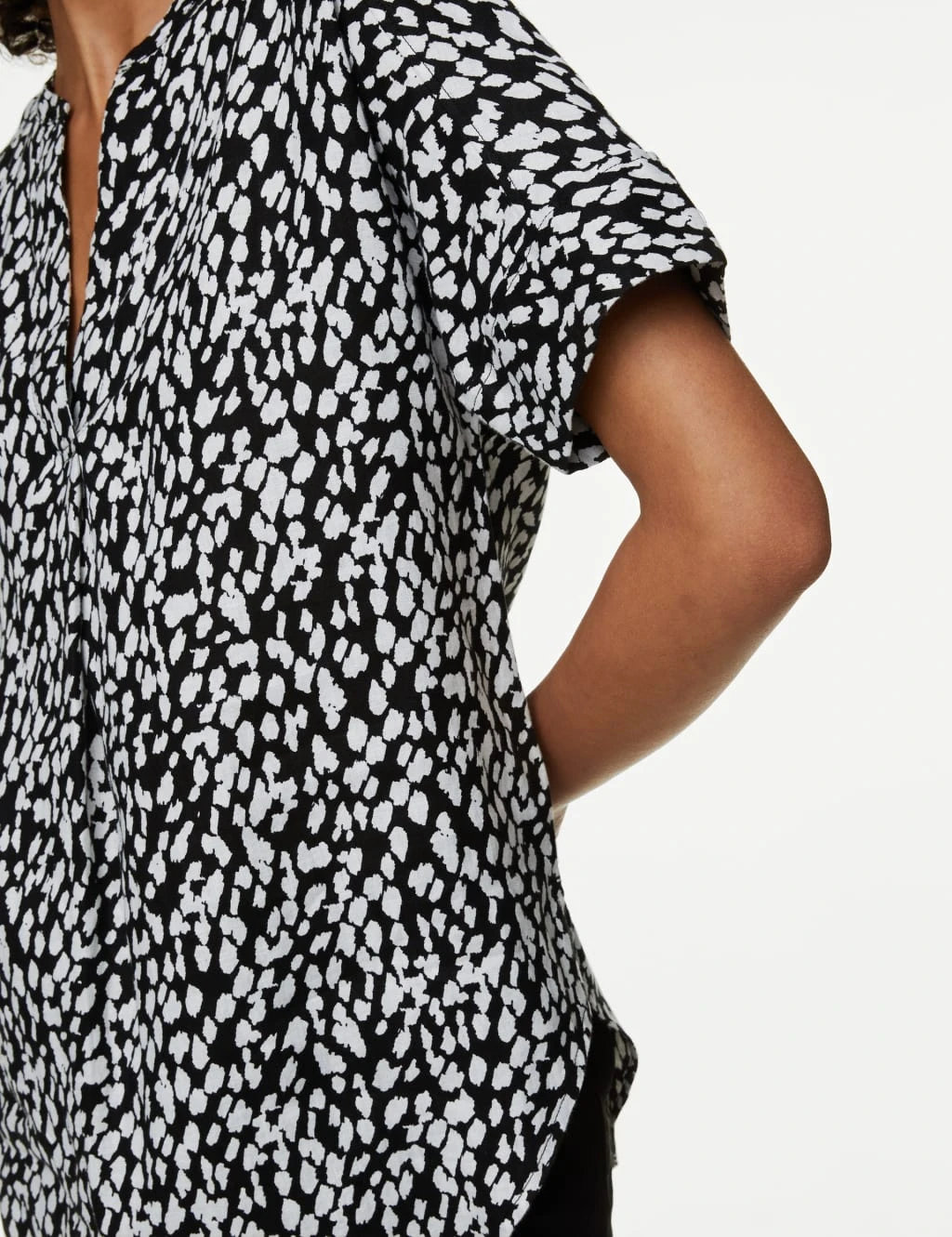 Breezy pure linen meets a bold animal print with this versatile popover blouse. It comes in a regular fit, with an elegant v-neckline and laid-back short sleeves. A pleat through the front creates a subtle drape.