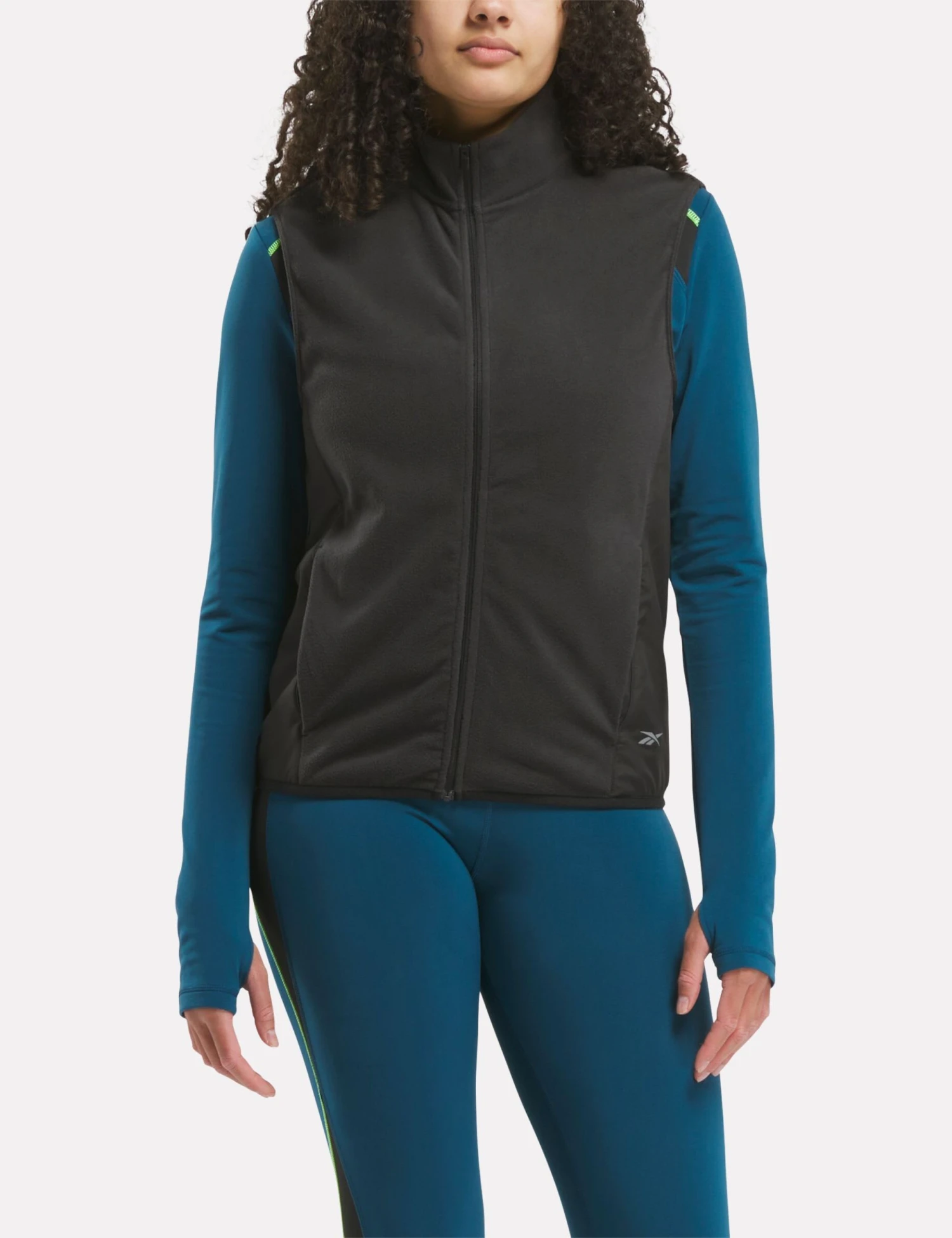 This Reebok sports gilet is your perfect companion for cold weather runs. The slim fit ensures a snug, close-to-the-body feel. This design is made from cosy polar fleece to keep you warm. Details include a full zip with a funnel neck for extra protection, forward side seam pockets for essentials and top-applied woven side panels for added durability.