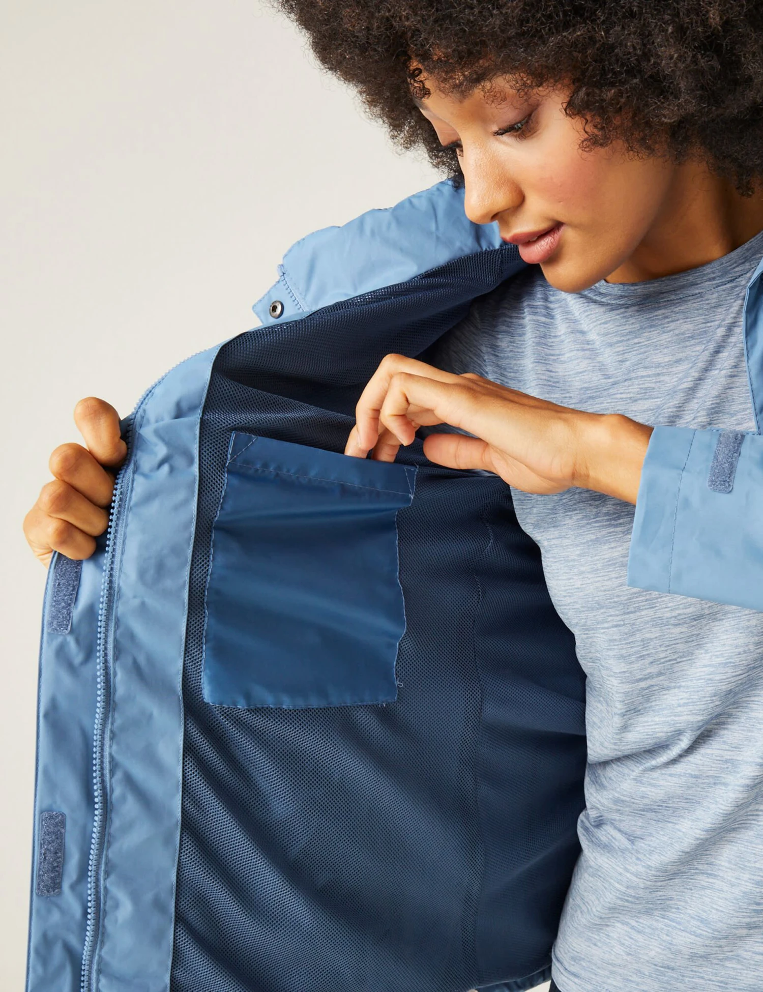 This versatile rain jacket from Regatta is a practical choice for damp days. It’s made in a regular fit, with a popper and zip fastening through the front. Adjustable cuffs and a cosy concealed hood help keep out the elements, while outer and inner pockets provide room for all your essentials.