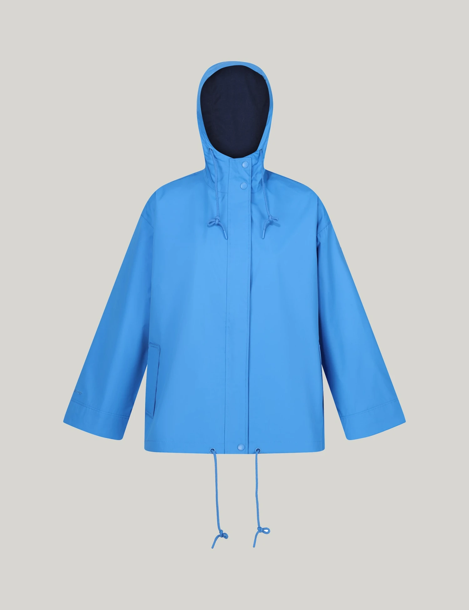 Stylish and practical, the Sarika raincoat from Regatta is a perfect piece to throw on for walks. It’s cut to a regular fit with a contrast lining for a fresh pop of colour. A funnel neck and hood provide extra coverage, while a drawstring hem allows for a more personalised shape. This style is fastened with popper buttons and a neat covered zip fastening. It has two handy side pockets for your outdoor essentials.