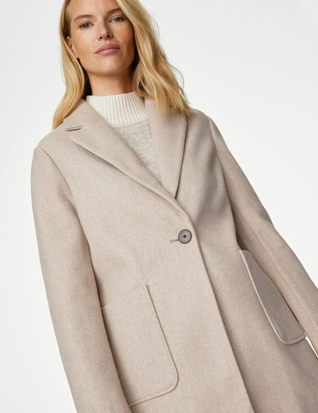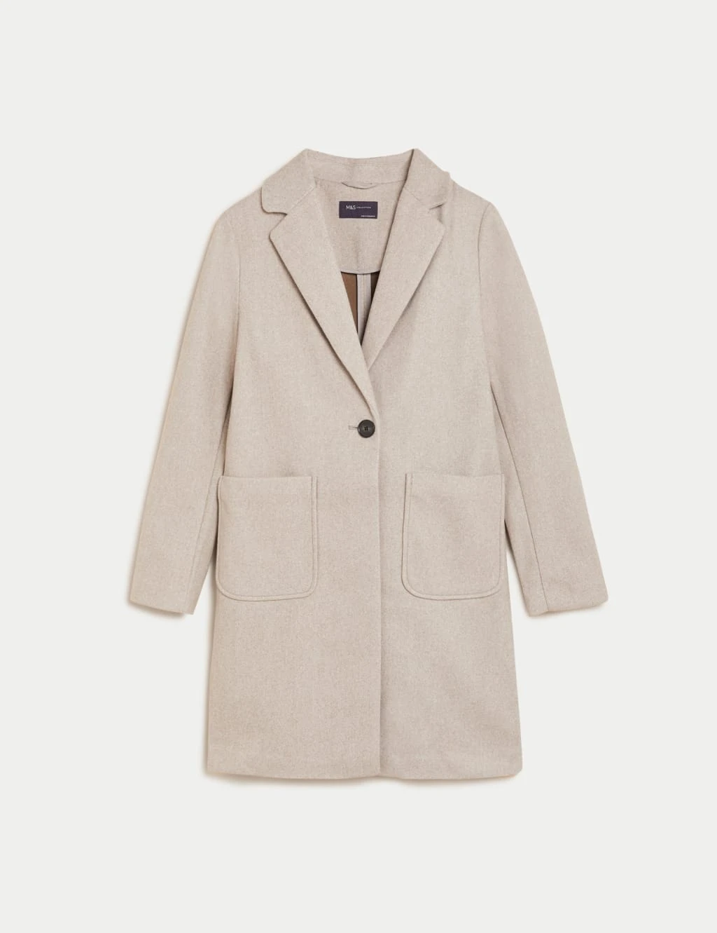 Layer up on chilly days with this single breasted coatigan. It’s designed in a comfortable relaxed fit and fastens with a single button beneath the lapel for easy wear. Two side pockets keep essentials close at hand. Made with recycled polyester.