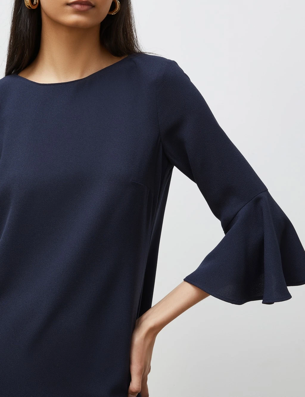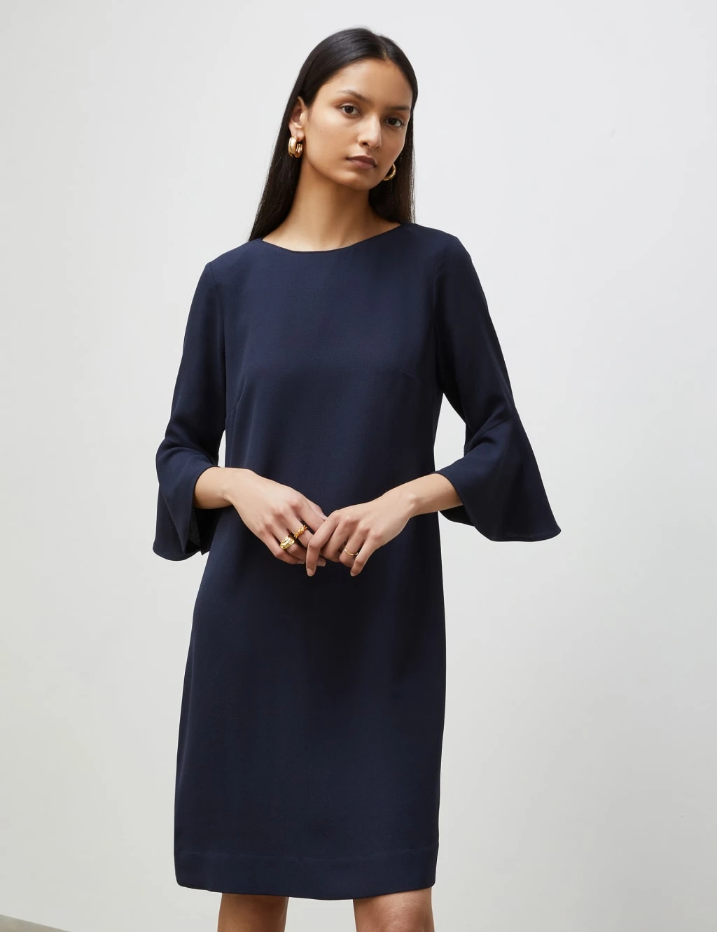 With its flowing fabric and pared-back style, this Finery London shift dress has timeless appeal. It’s cut in a regular fit with an understated round neck and feminine, three-quarter-length bells sleeves. The mini-length piece is finished with a neat button fastening at the back.