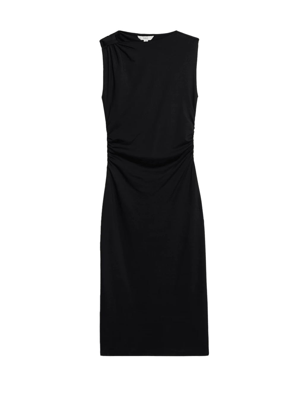 This bodycon dress is a timeless addition to your wardrobe. It’s cut in a regular fit, with added stretch for comfort. Ruching at the waist creates a flattering shape, while a round neckline offers a neat look. This piece is complete with an elegant midi-length hem. M&S Collection: easy-to-wear wardrobe staples that combine classic and contemporary styles.