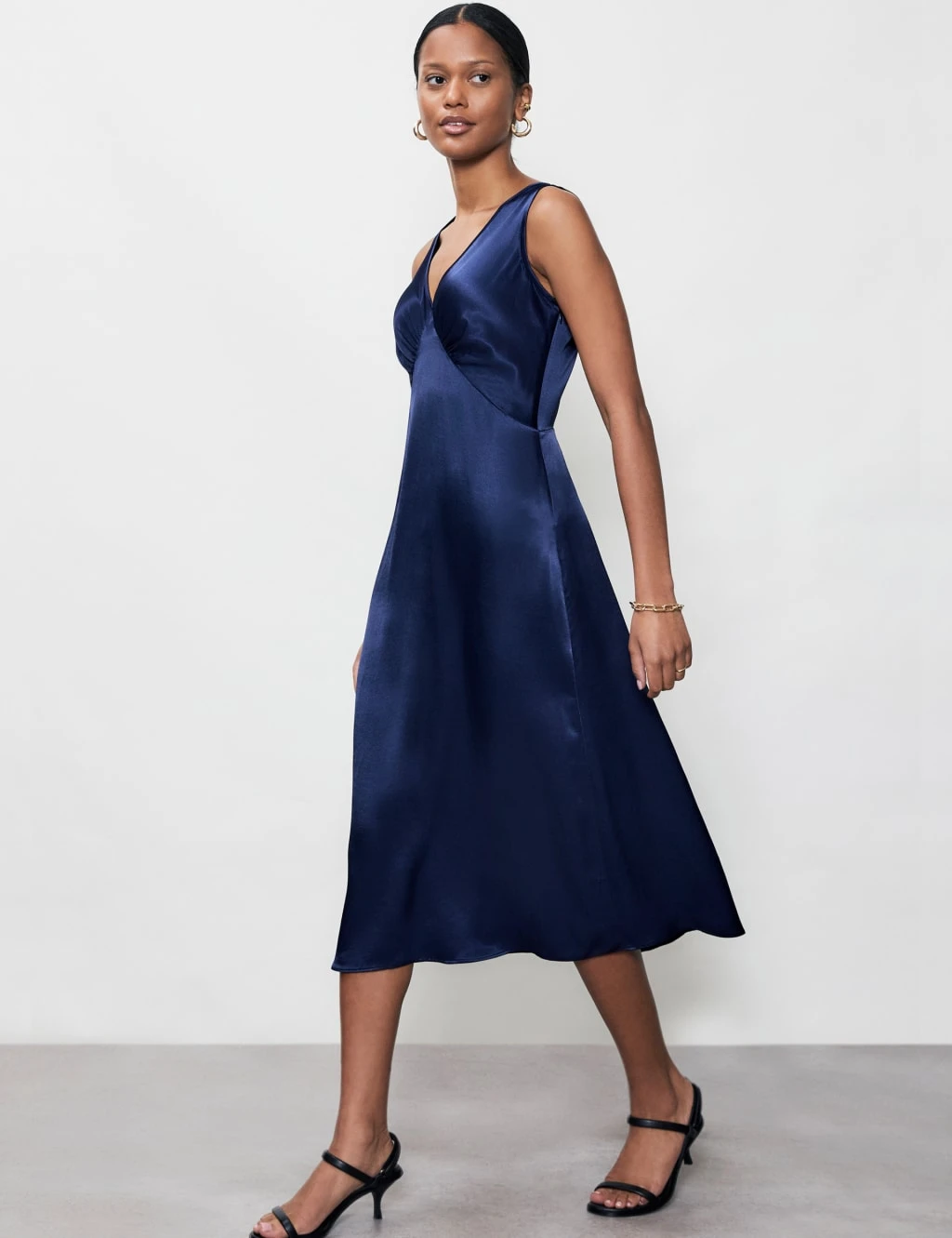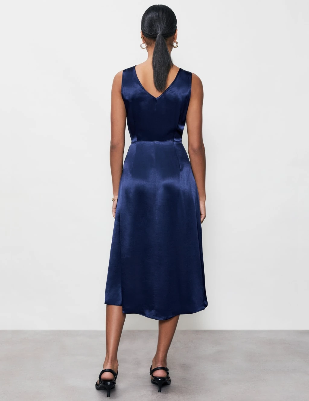 Step into the spotlight at your next event with this luxurious satin tea dress by Finery London. This sleeveless design is cut to a regular fit, with a v-neckline and a softly gathered bust for a figure-flattering silhouette. The flowing midi-length skirt creates elegant movement.