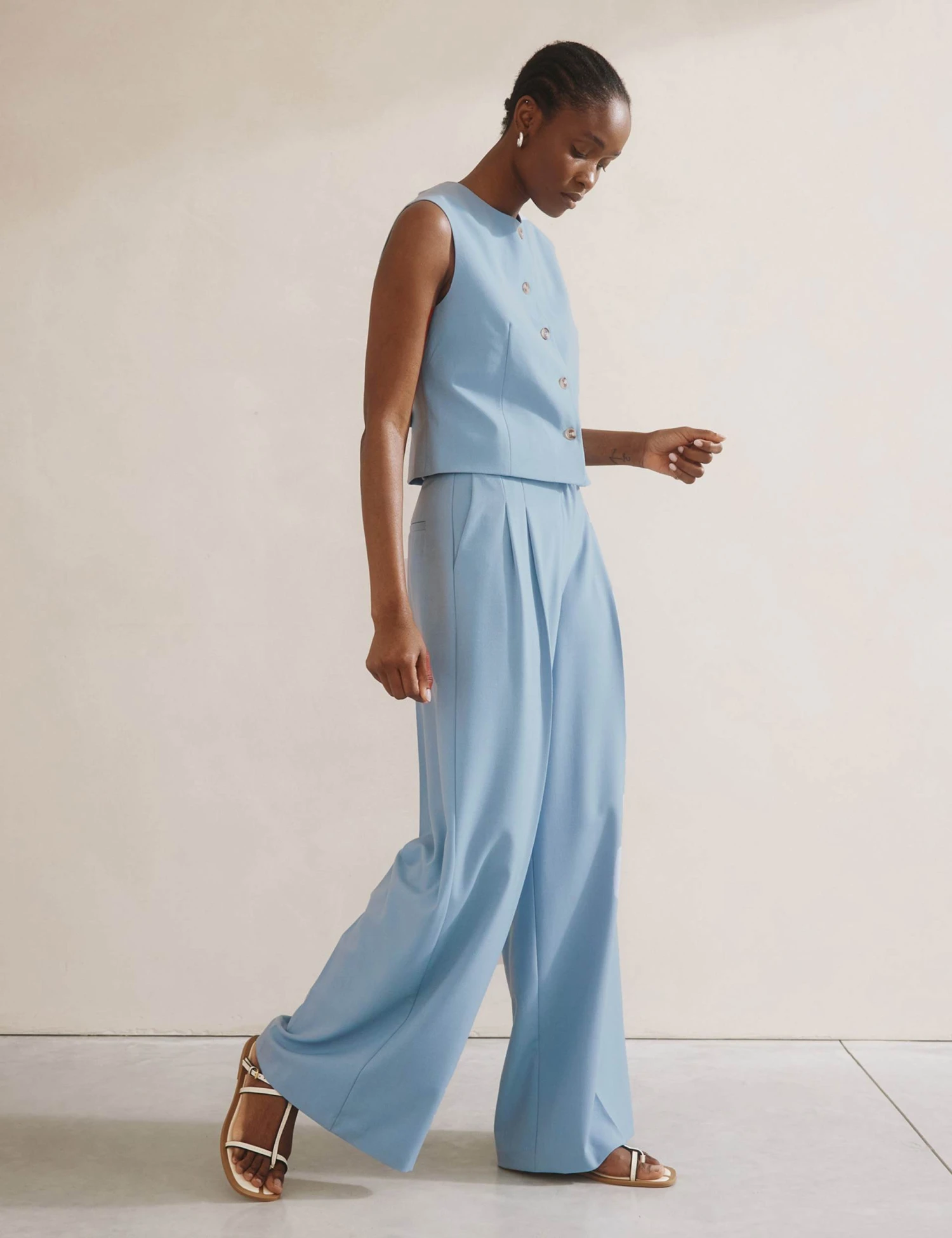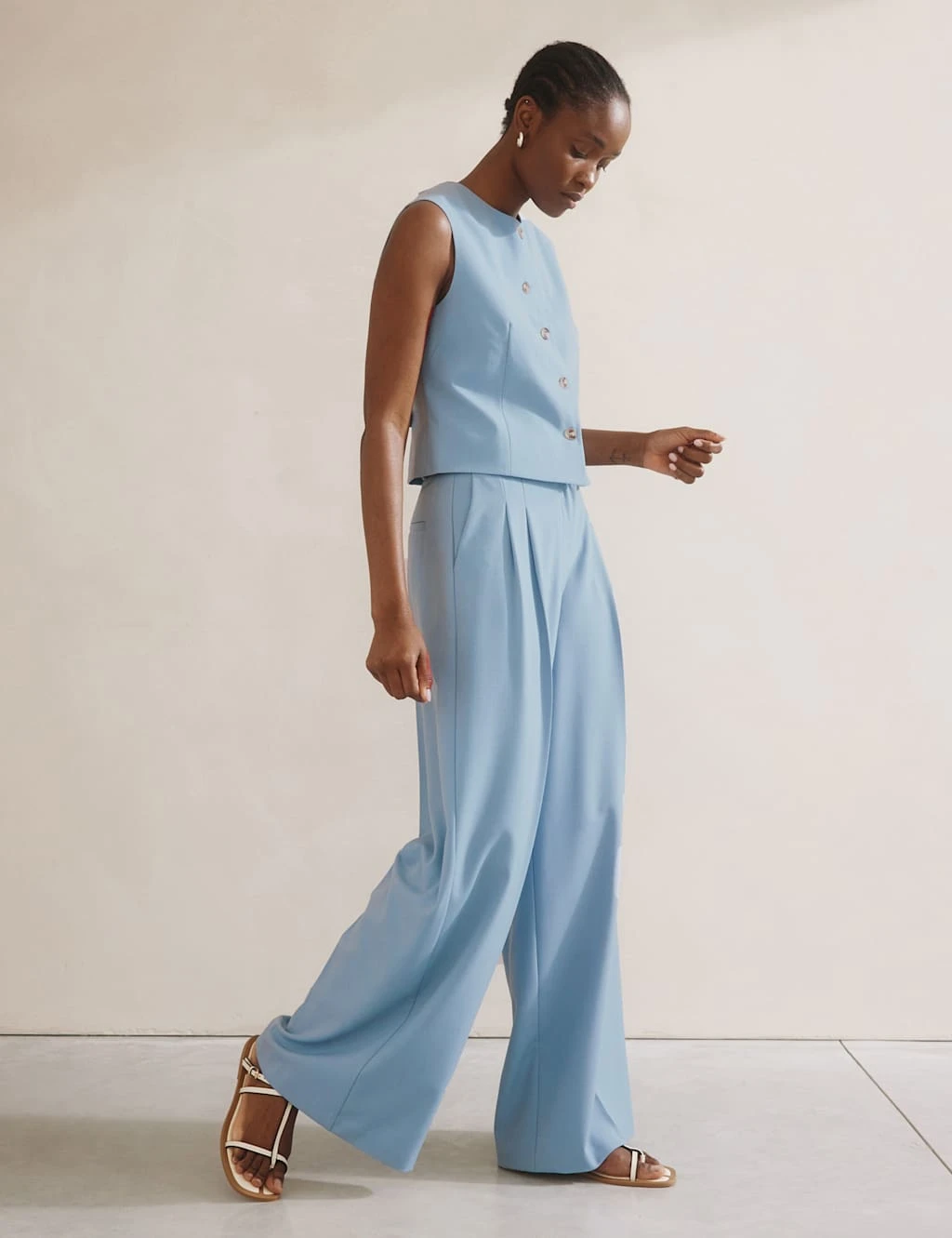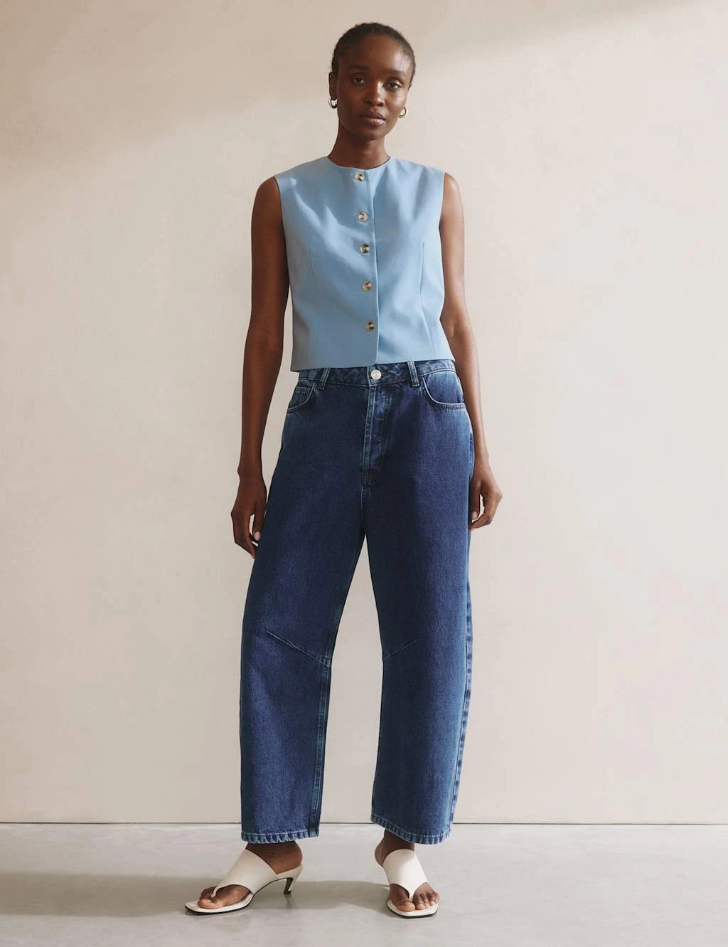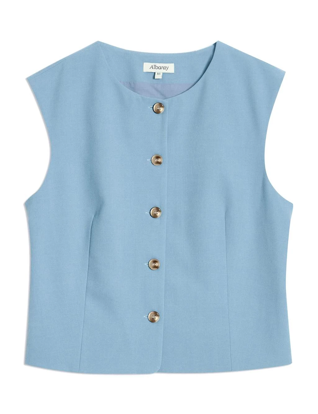 This Albaray waistcoat delivers smart style. Made in a regular fit, with a single-breasted button-through front. The collarless neckline offers a streamlined look while darts add flattering shaping. Complete with an on-trend cropped length and an adjustable strap at the back to cinch the silhouette.
