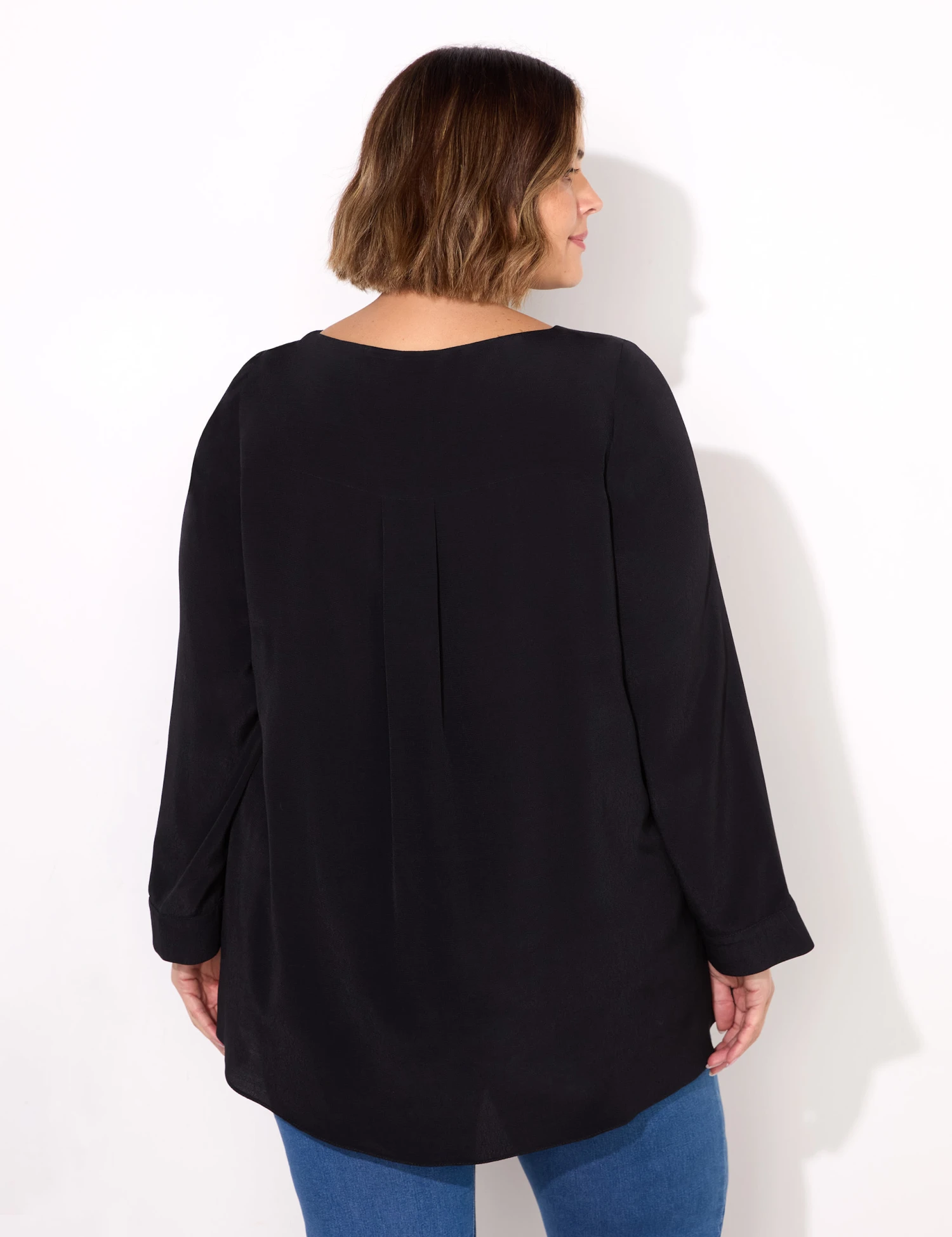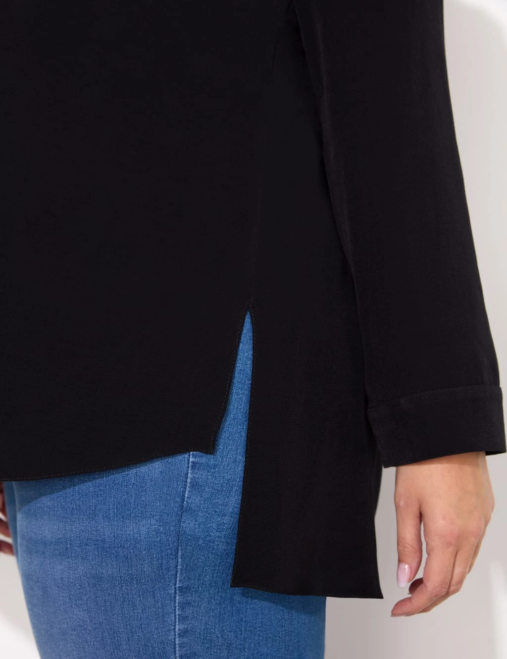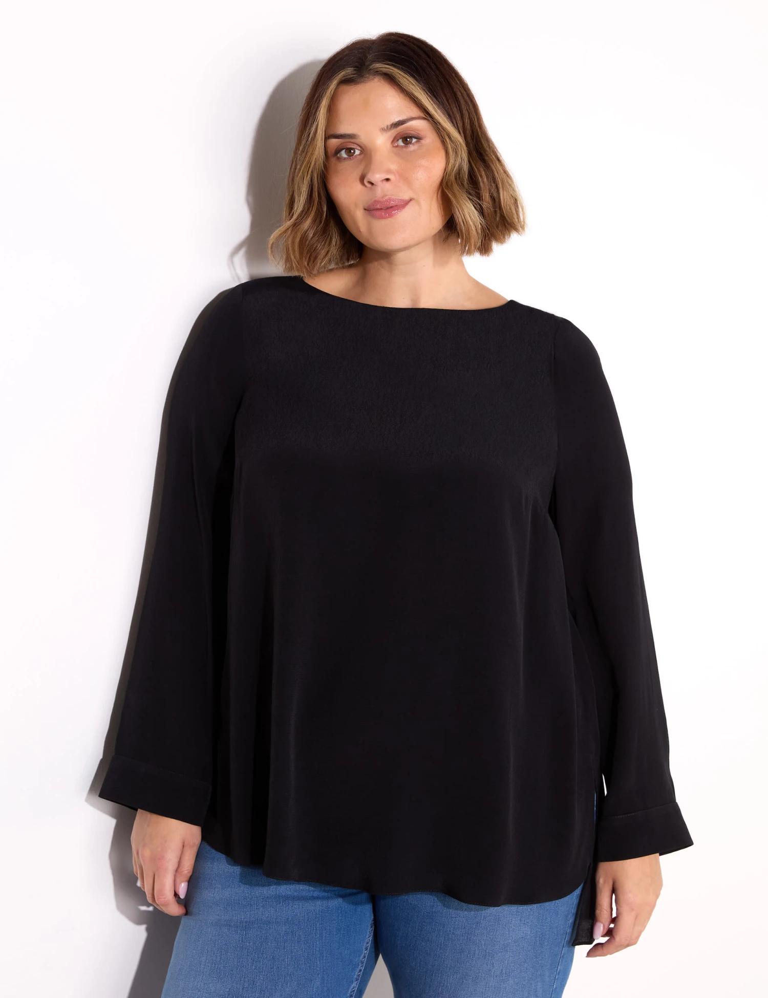 This tunic from Live Unlimited London is a versatile piece for smart and casual occasions. Comfy regular fit, with long sleeves and an elegant slash neckline. The hem is split at the sides and dropped at the back for a flowing silhouette.