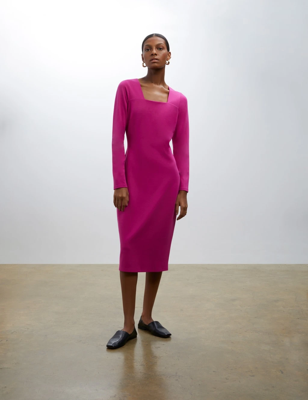 Make today’s ensemble a striking one with this tailored dress by Finery London. It’s crafted in a regular fit, with a contemporary square neck and a straight, midi-length skirt. Long sleeves and seam detailing around the shoulders complete the bold look.