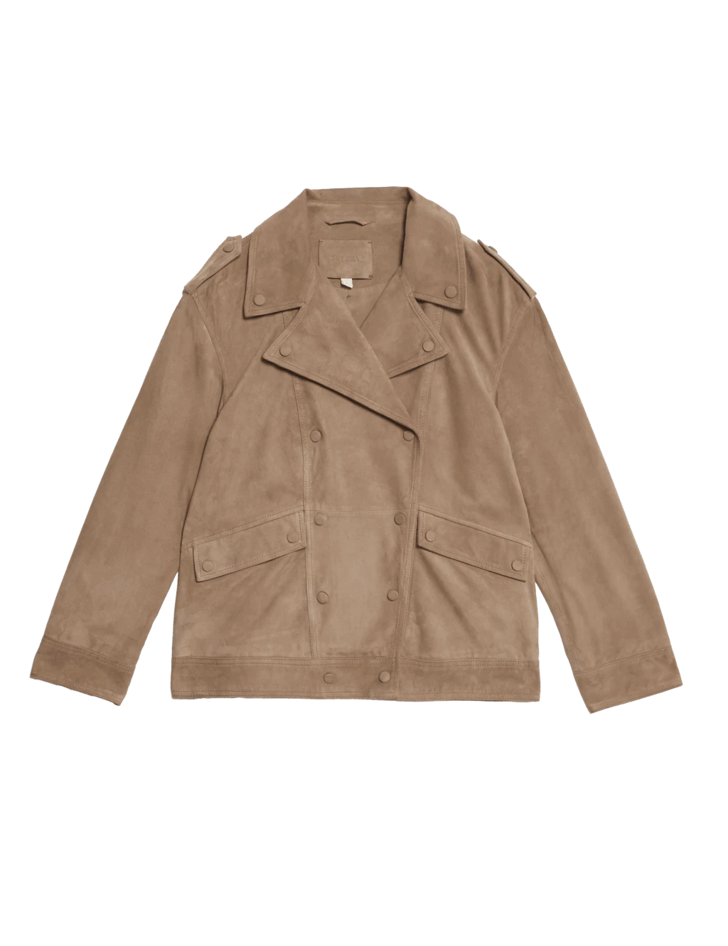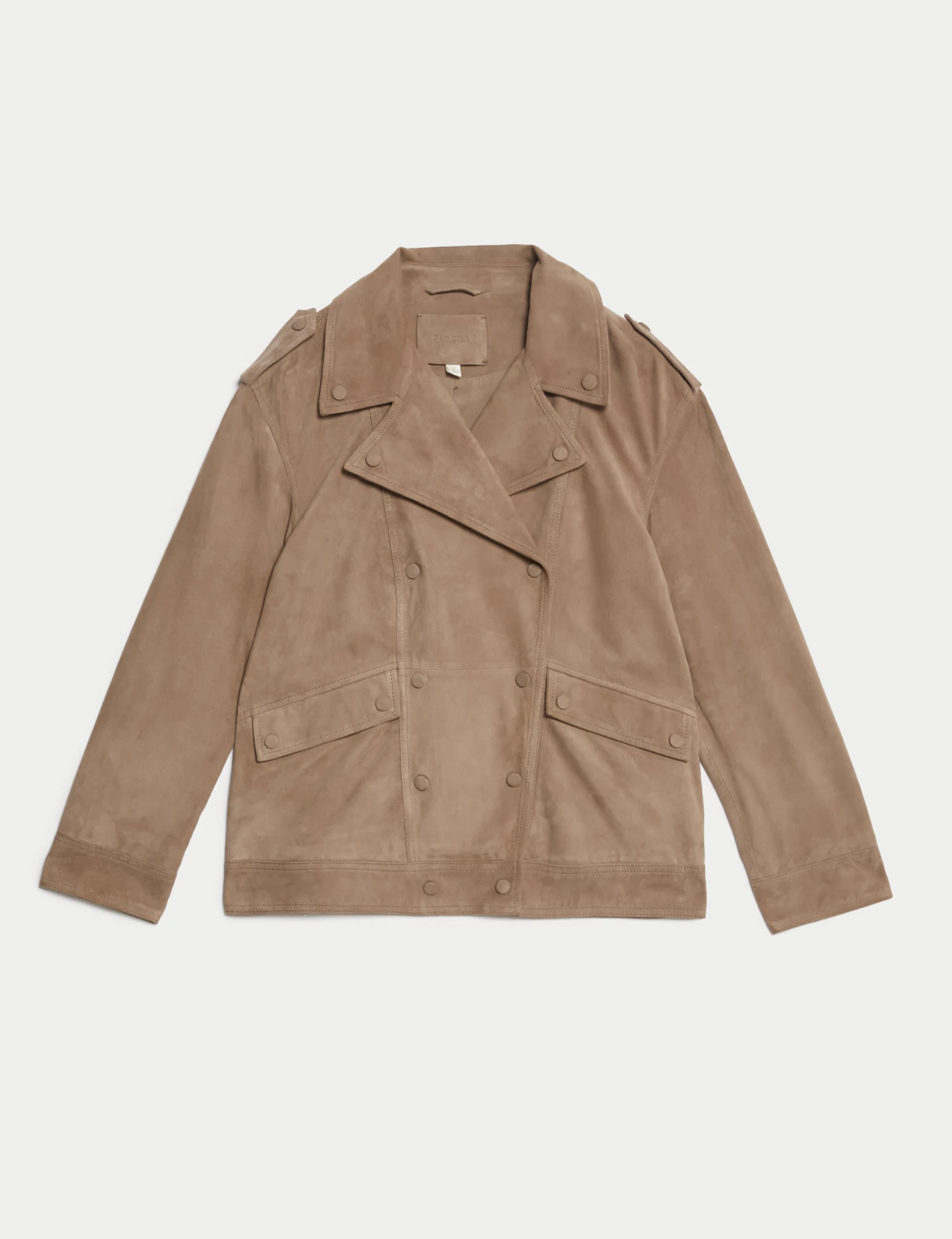 This soft suede biker jacket from our Per Una collection is a versatile addition to your wardrobe. It’s designed in an oversized fit for a relaxed look, with a wide collar for added shape. Co-ordinating poppers on the front ensure a seamless look. It’s complete with two front pockets for storing your essential items. Per Una: stylish designs crafted with carefully considered details and feminine flourishes.
