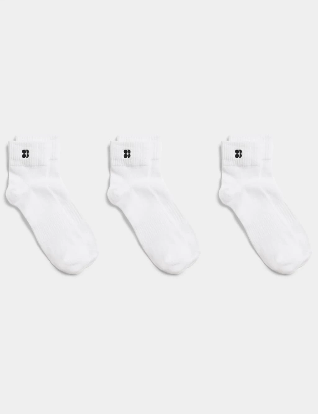 Refresh your workout wardrobe with this three-pack of Sweaty Betty ankle socks, made from breathable cotton-rich fabric. They’re fully cushioned to absorb impact, and feature a ribbed cuff to hold them in place while you move. A contrast logo adds a signature finishing touch to each pair.