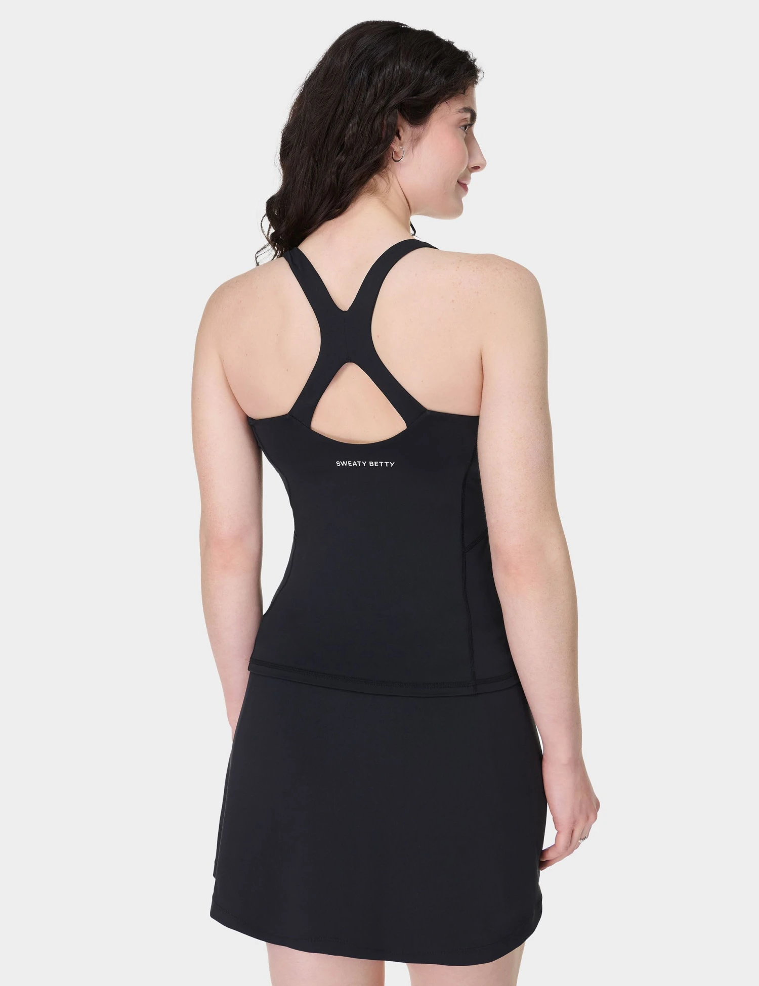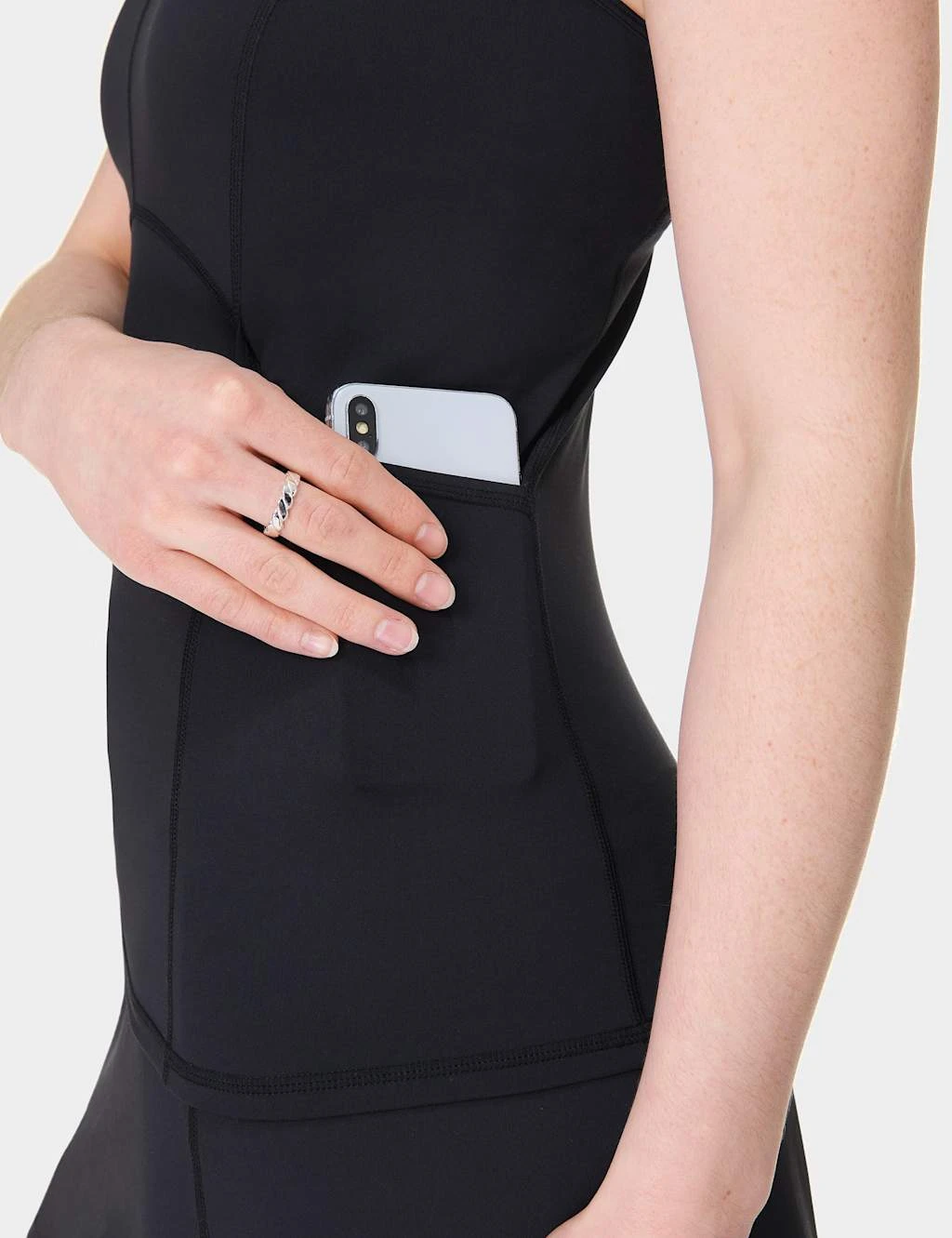 This stretchy vest top from Sweaty Betty is built to boost your performance. It’s cut to a slim fit from lightweight stretch fabric that’s moisture wicking and quick drying. The cool design has a flattering scoop neck and a racerback, plus a built-in bra shelf lining with removable pads for light support. It’s finished with multiple hidden pockets to keep your essentials close by.
