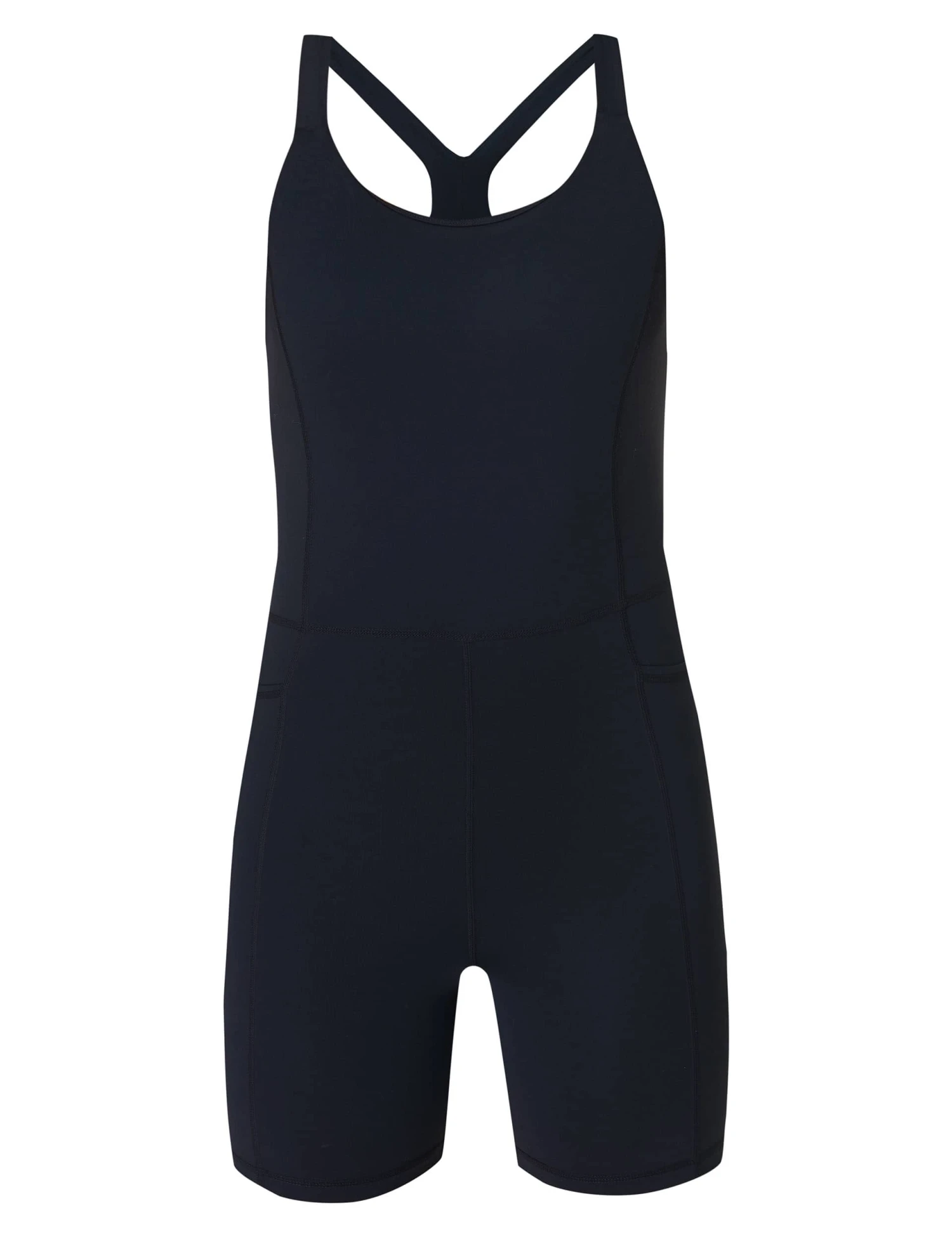 Effortlessly move from laidback days to studio classes with this short bodysuit from Sweaty Betty. It’s made in a regular fit with flattering seamlines for a sleek, streamlined silhouette. A scoop neckline and racerback allow freedom of movement. The breathable fabric is moisture-wicking and squat-proof so you can work out in comfort.