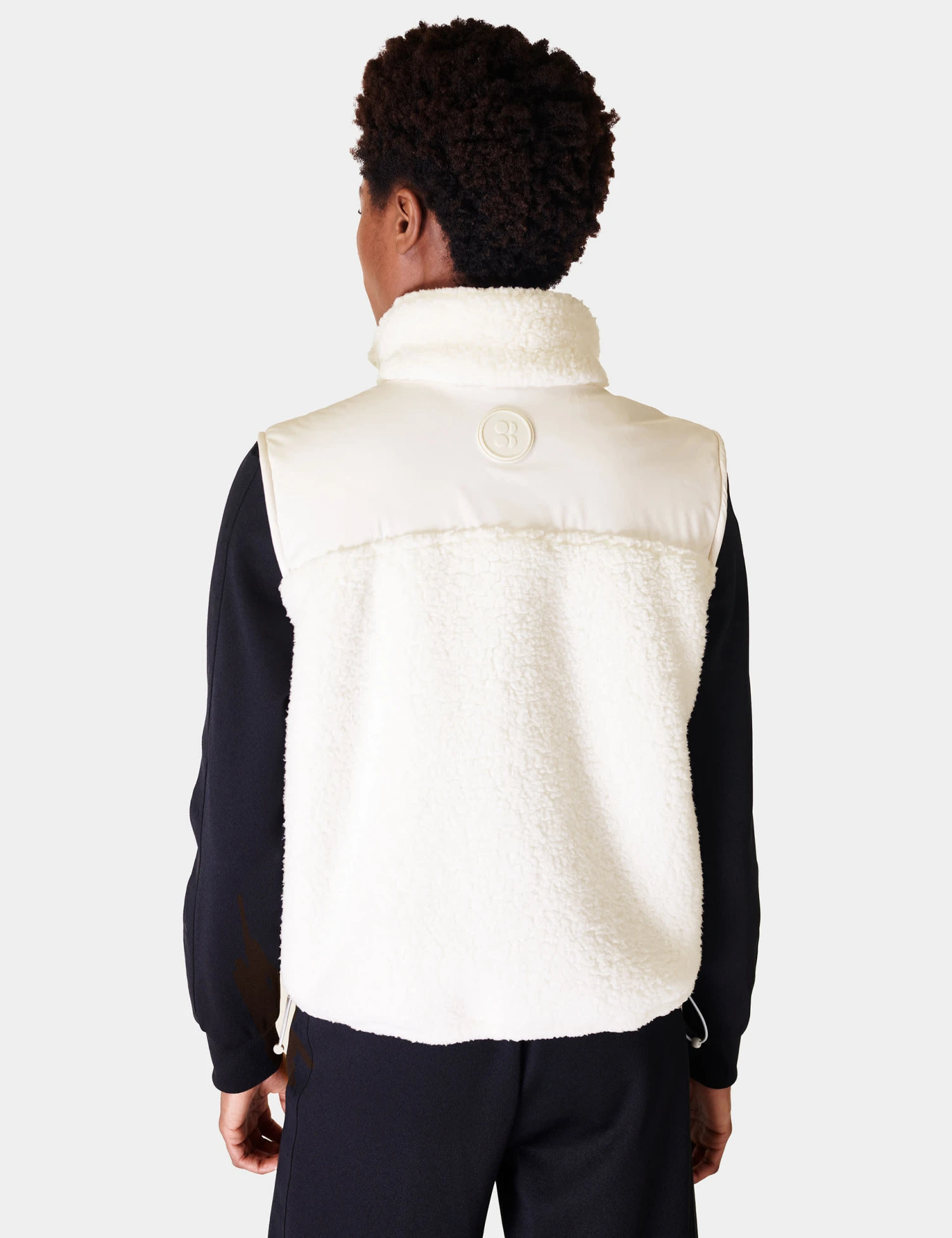 Crafted from cosy fleece, this Sweaty Betty gilet will keep you warm on your way to and from the gym. This versatile piece is ideal for a layered look, made to a sleeveless design in an easy relaxed fit. A funnel neck and zip-through fastening help you stay snug on chillier days.