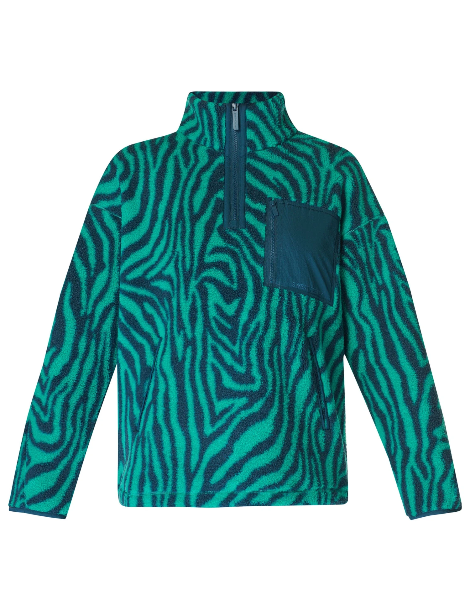 The Karma fleece from Sweaty Betty is a cool way to keep cosy. It’s cut to a relaxed fit from ultra-soft, high-pile fleece with a brushed jersey lining. Dropped shoulders add to the casual feel, while a half-zip funnel neck offers extra coverage. This bold animal-print design is finished with a gathered adjustable hem, plus pockets on the chest and sides.
