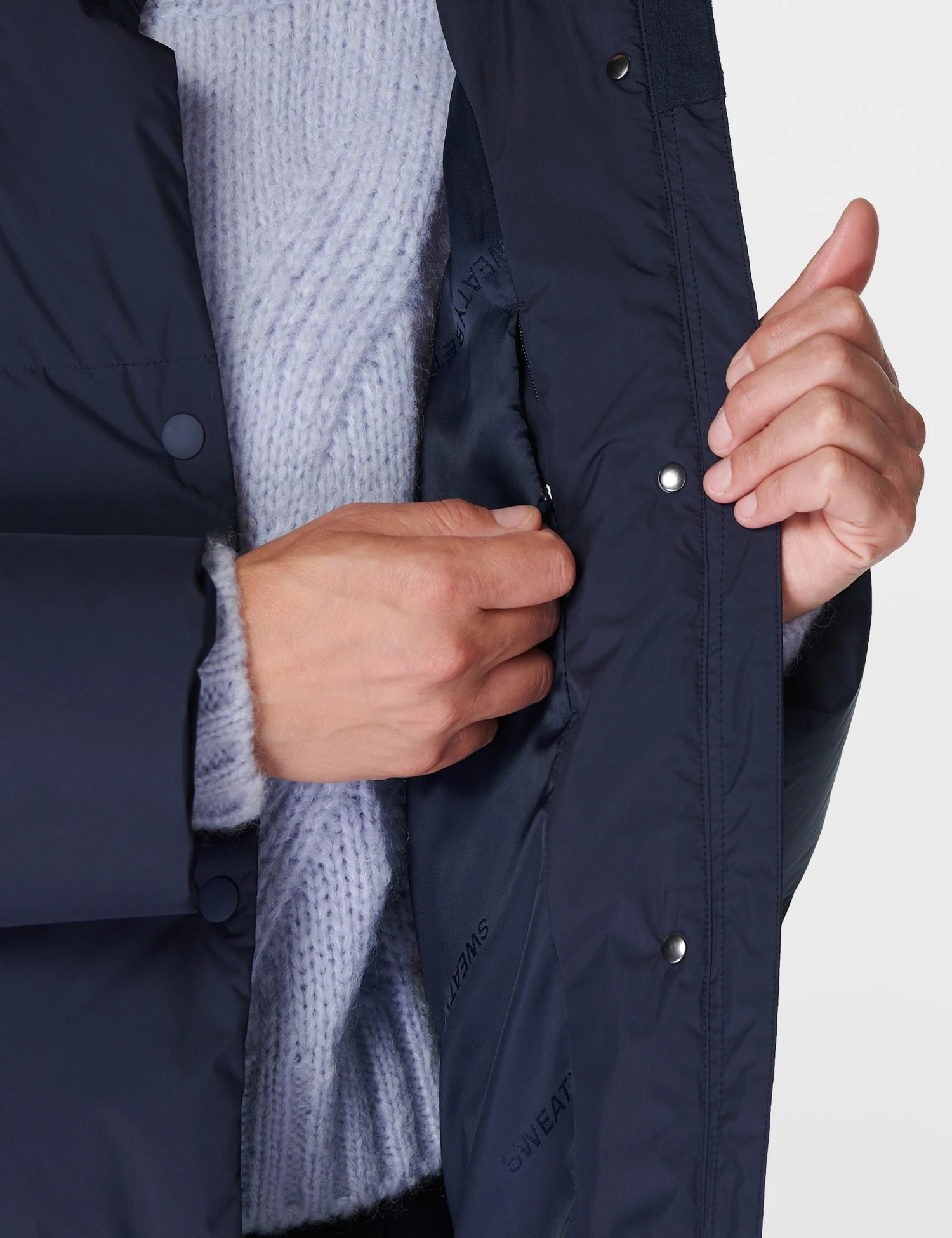 This cosy puffer jacket from Sweaty Betty is a stylish way to keep warm. It’s designed in an easy regular cut with a zip and popper fastening for a secure fit. The stand collar and hood add extra warmth, while side pockets make room for your essentials. This cold-weather staple is padded for a snug feel.