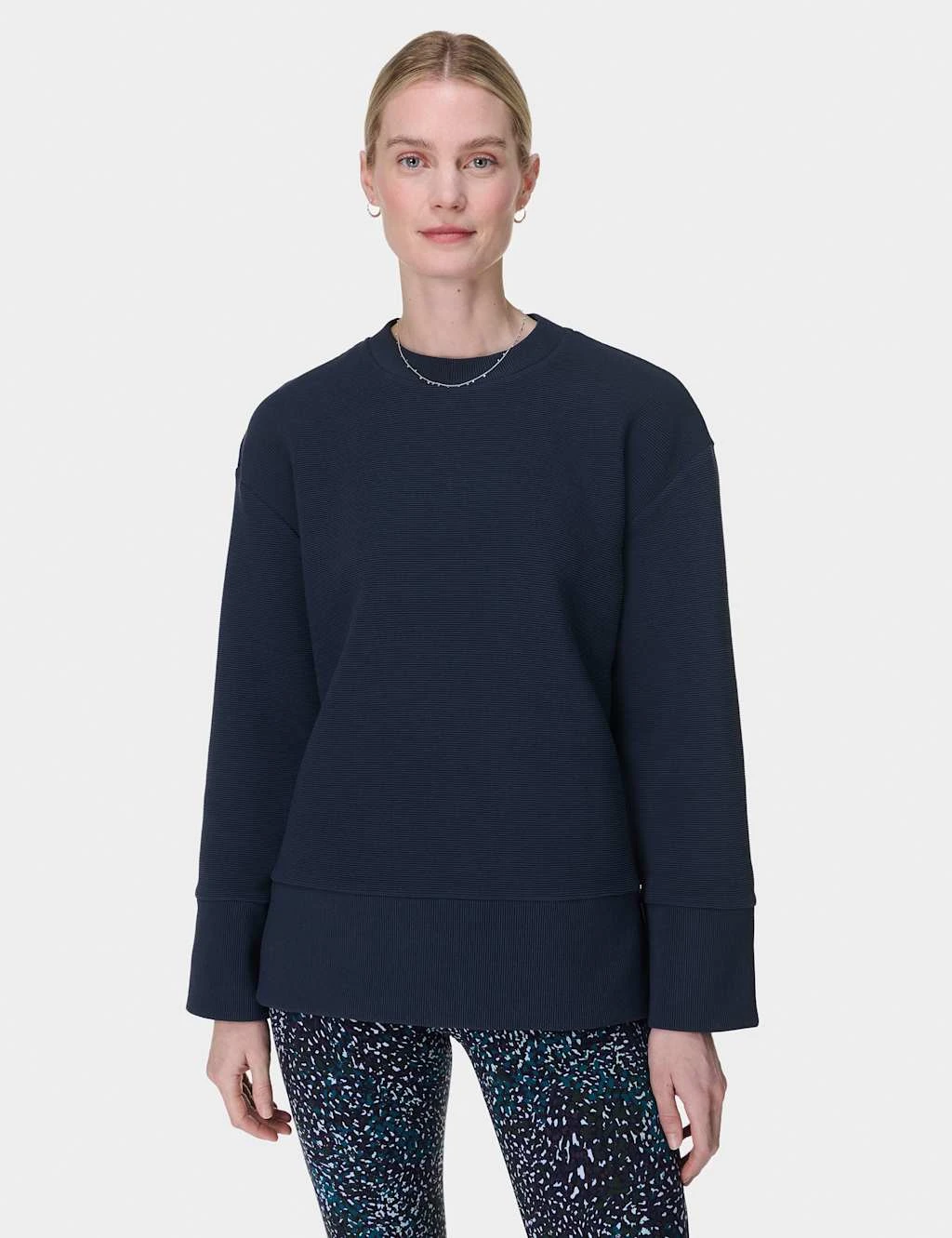 Refresh your off-duty wardrobe with this ribbed sweatshirt from Sweaty Betty, crafted from cool cotton-blend fabric. It has an oversized fit with dropped shoulders to enhance its casual look. Two side splits give this style a flexible feel.