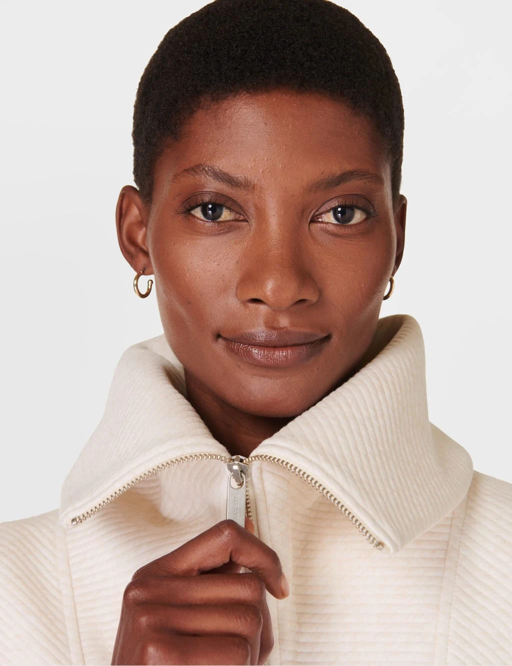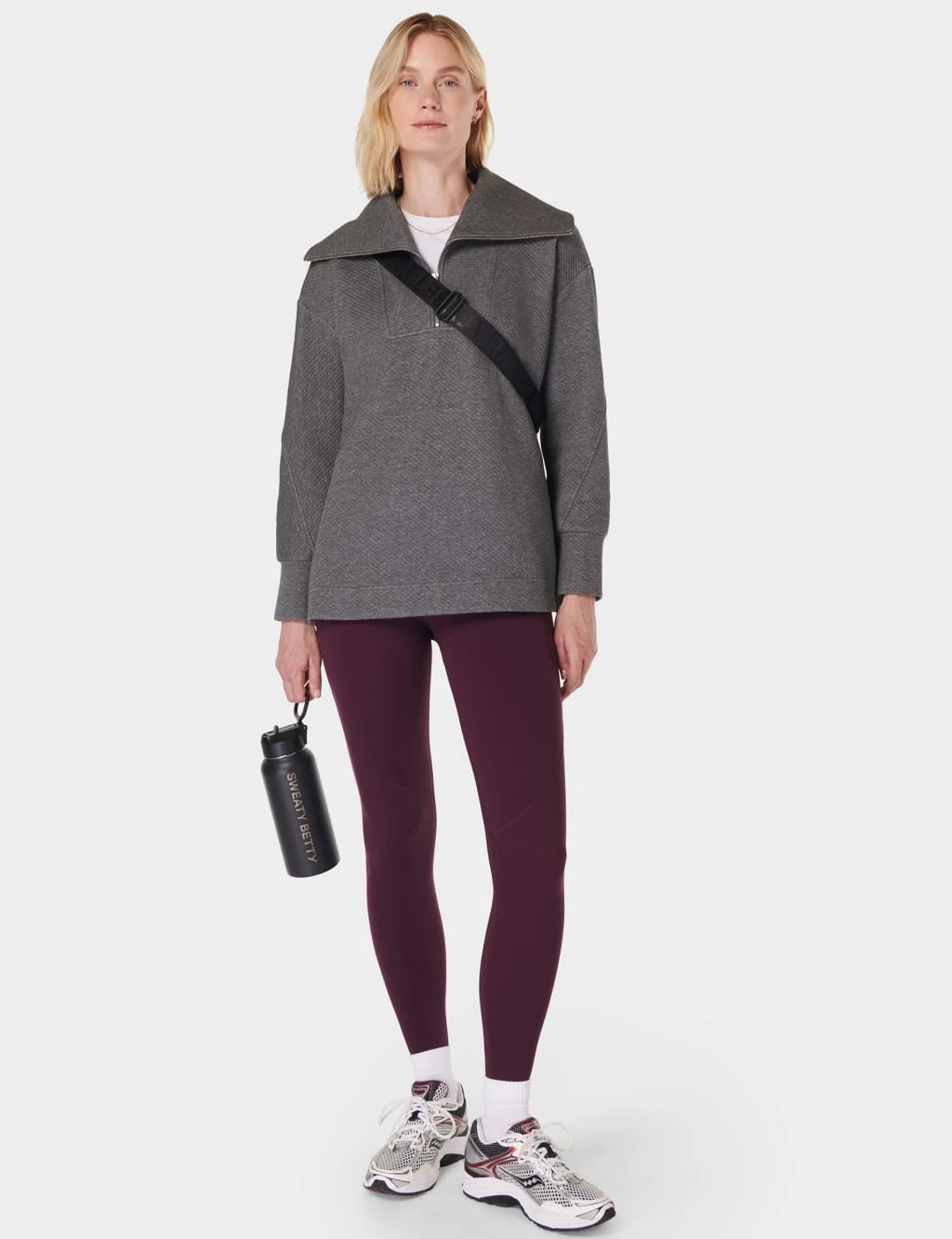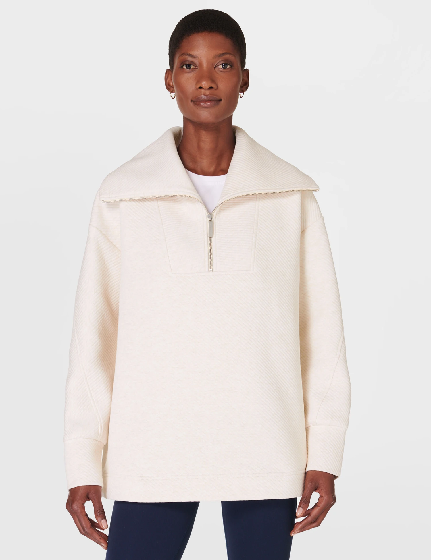 Whether you’re running errands or to the gym, throw on this Sweaty Betty sweatshirt, crafted from a soft, cosy cotton blend. It’s cut in a comfortable relaxed fit, with a boxy longline shape for a casual look. A half-zip fastening allows you to adjust the styling of the wide collar. Diagonal ribbing adds extra style points, while side splits in the hem allow easy movement.