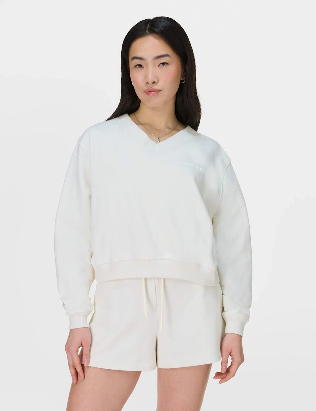 Upgrade your sporty essentials with this comfortable cotton-rich sweatshirt from Sweaty Betty. It’s cut in an effortless relaxed fit, with a feminine v-neckline and roomy long sleeves. The dropped shoulders create a casual silhouette, while signature embroidery on the chest adds a stylish touch of branding. Ribbed trims offer an elevated finish.