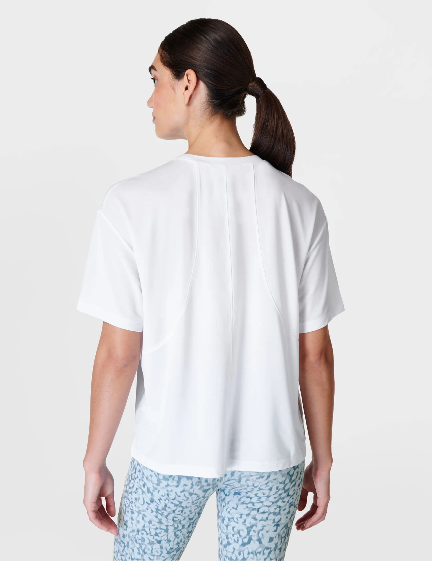 This Sweaty Betty t-shirt is made with a touch of Lyocell™ for a lightweight, soft and breathable feel. It’s cut in a relaxed fit for comfort, with an easy crew neckline and airy short sleeves. Vertical seam detailing on the front and back offers a stylish sporty look.