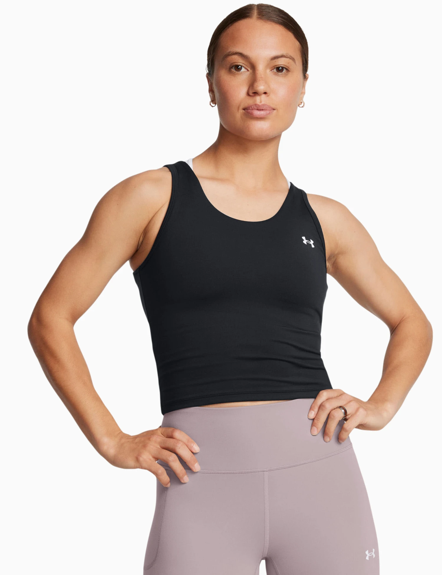 Keep your cool through the toughest training session in this vest top from Under Armour. It’s cut in a regular fit, with a scoop neck and a deep scoop back for minimal coverage. The ultra-soft fabric is breathable for good air circulation and has four-way stretch to allow easy movement in all directions. At the slightly cropped hemline, a brand logo adds a neat finishing touch.