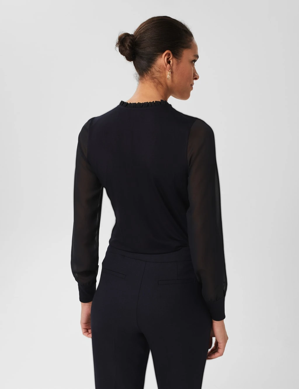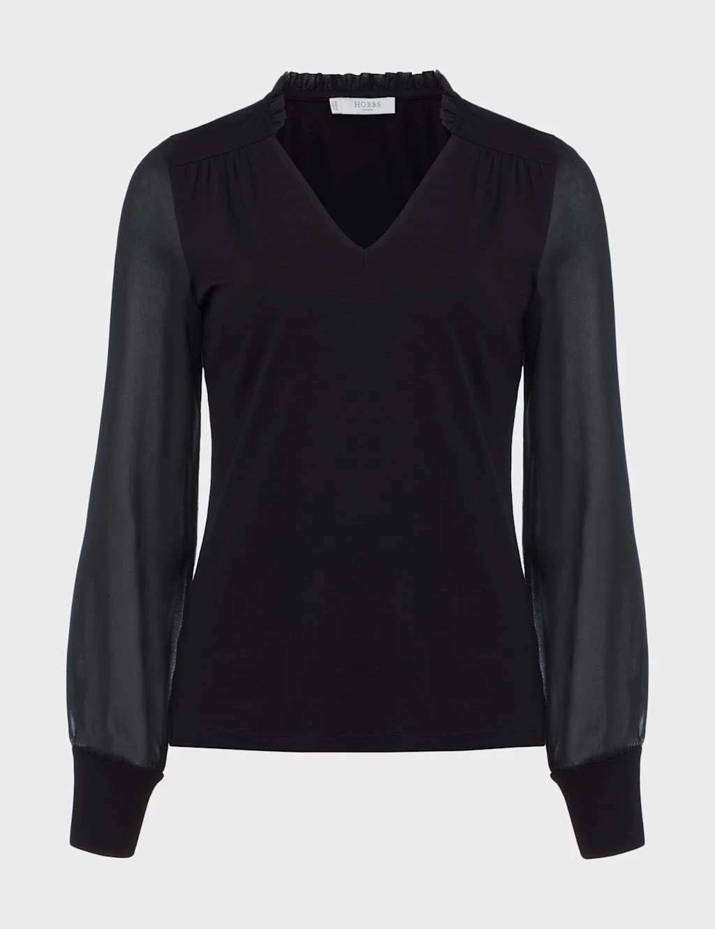Add an elegant touch to your ensemble with this Hobbs blouse. It’s cut in a regular fit and features long blouson sleeves crafted from sheer fabric. The v-neck has feminine frill detailing at the back for a dainty flourish.