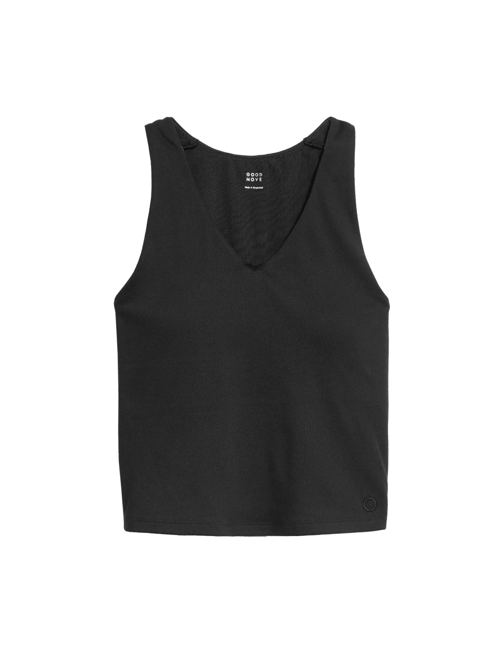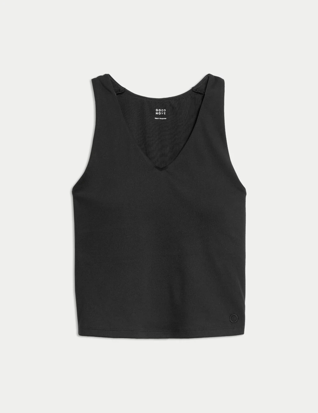 This cropped yoga vest top from our Goodmove collection offers light support for your practice. It’s designed in a flattering fitted shape, with a v-shaped neckline and removable padded cups. The fabric is breathable and quick-drying, with added stretch for comfort. Our Cool Comfort™ technology helps to keep you feeling fresh, while flat seams reduce rubbing.