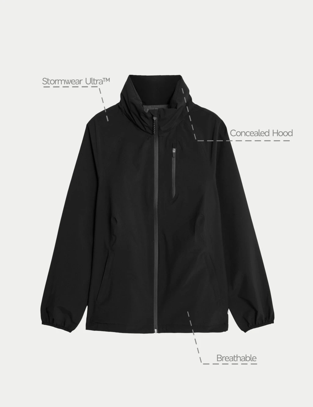 Keep dry and comfortable on wet days in this waterproof jacket from our Goodmove collection. It’s designed in a regular fit, with a hood and a high funnel neck for extra coverage. The zip-up front and jacket seams are sealed for full rain protection, while the wind-resistant fabric helps to keep you warm while remaining breathable. This jacket is complete with secure zip pockets for your essentials.