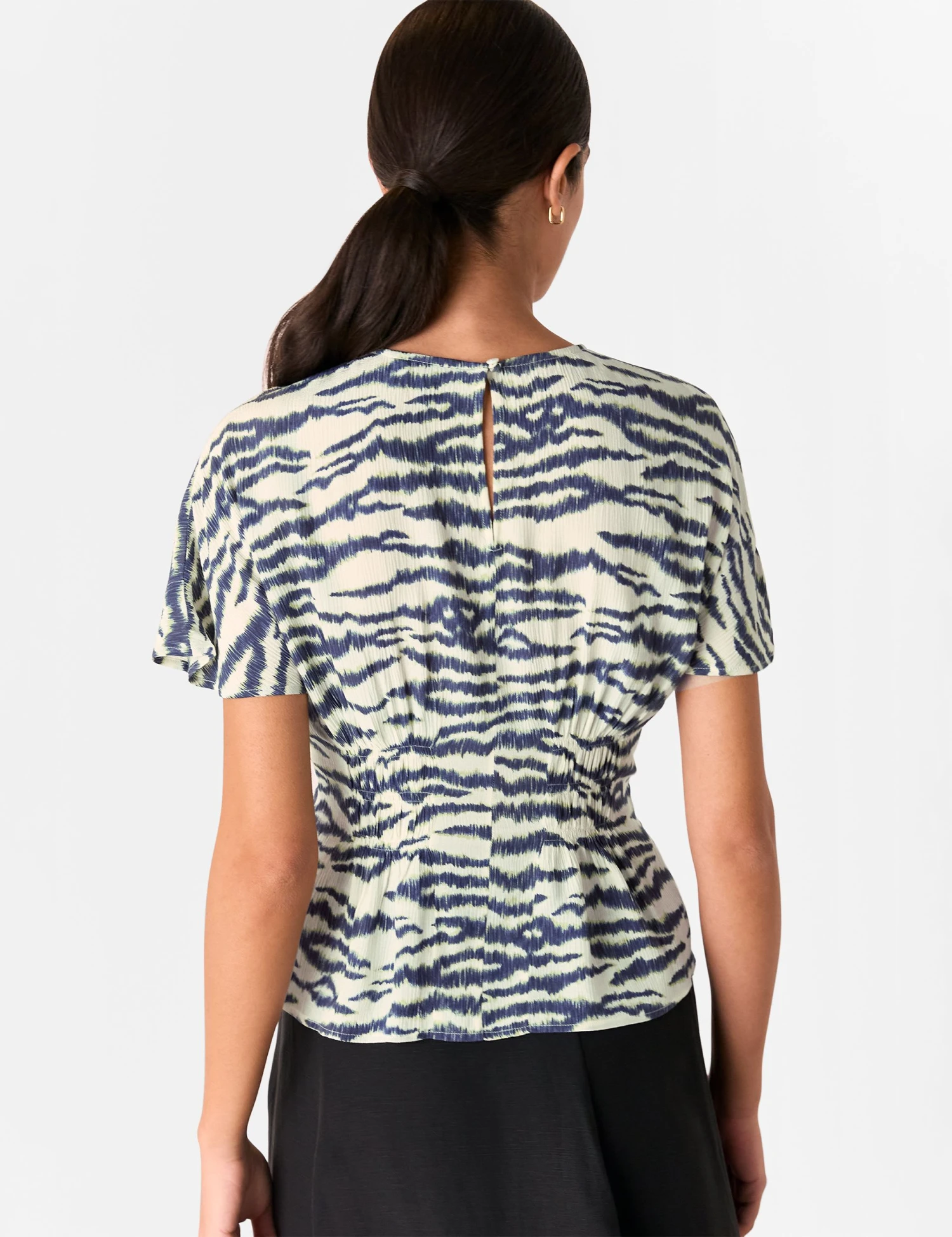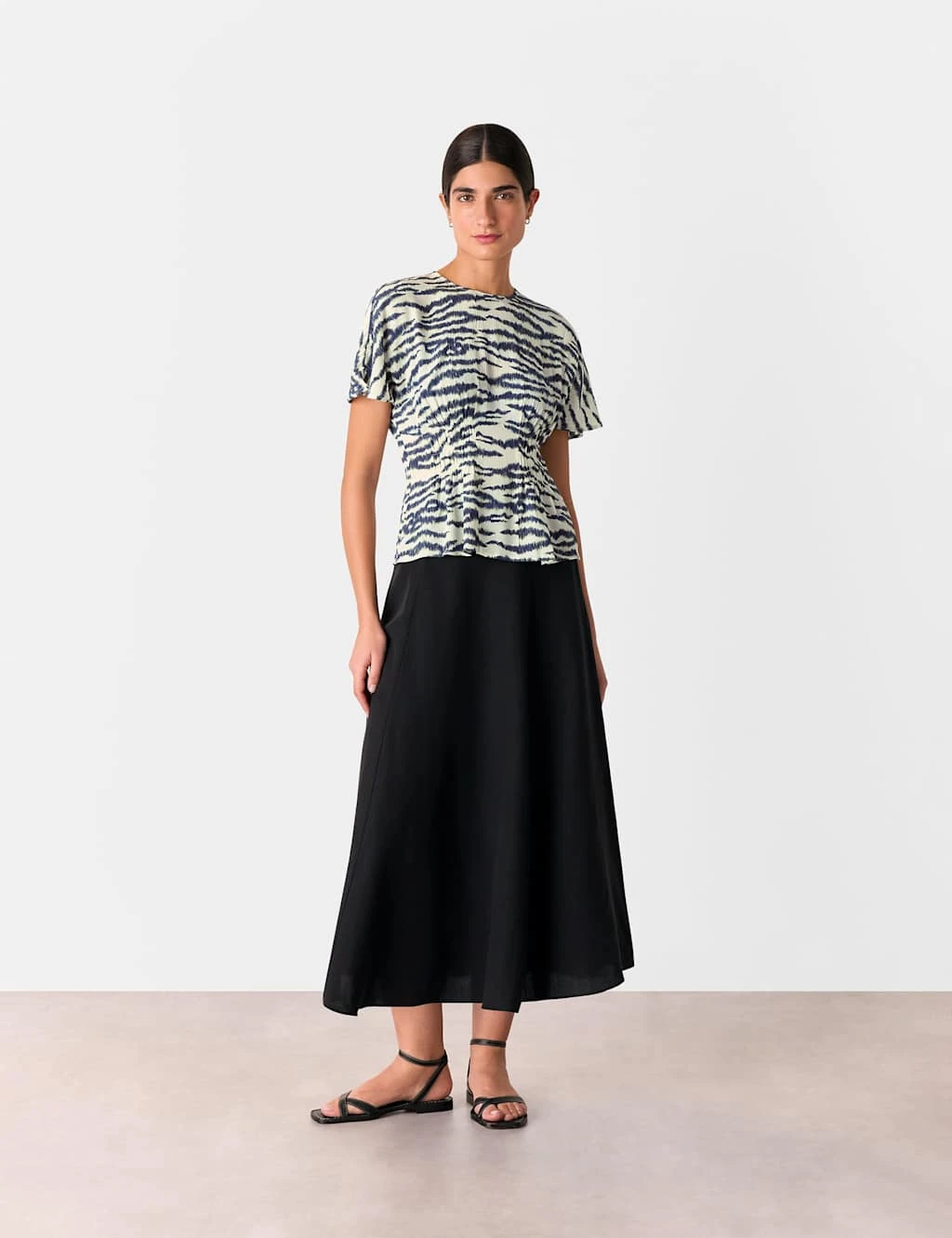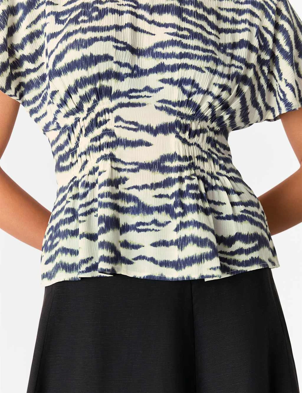 This feathered tiger print blouse by Whistles brings instant sophistication to your outfit. It’s designed in an easy regular fit with a round neckline and short grown-on sleeves. Shirred detailing at the waist creates a sculptural effect and feminine shaping. This style is finished with a back button keyhole fastening.